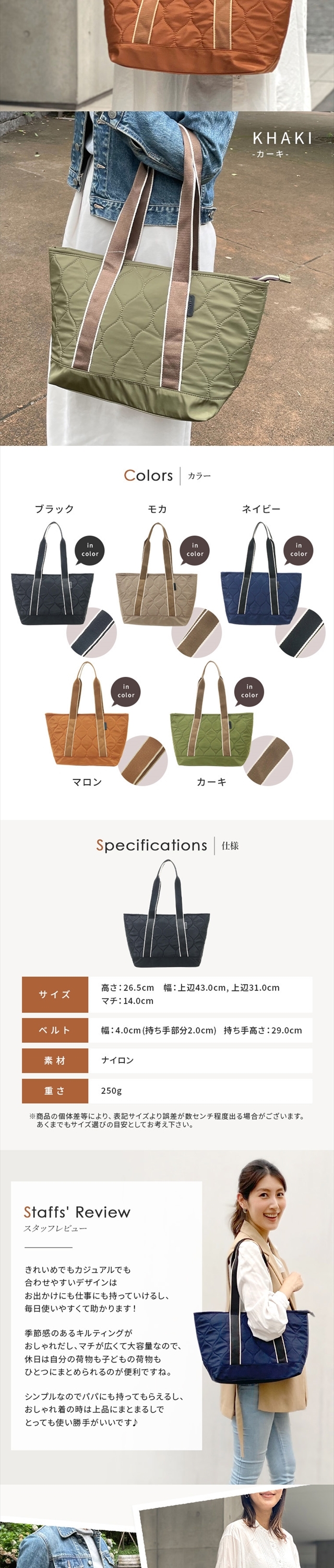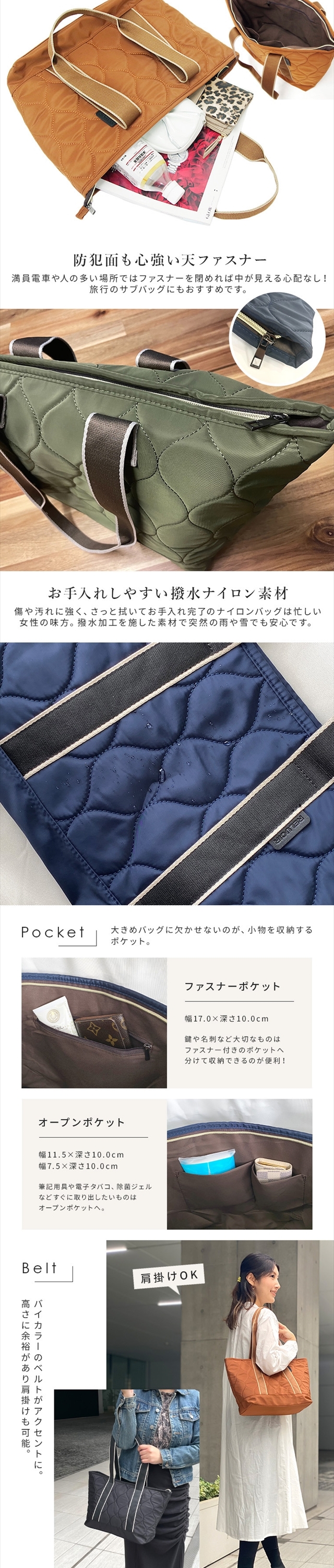 トートバッグ レディース キルティング 大きめ ファスナー付き a4 小さめ 布 通勤 軽量 大学生 ナイロン 肩掛け 大人 大容量 おしゃれ かわいい 女性 軽い きれいめ カジュアル シンプル ポイント消化 送料無料 新作 プレゼント ギフト 夏 母の日
