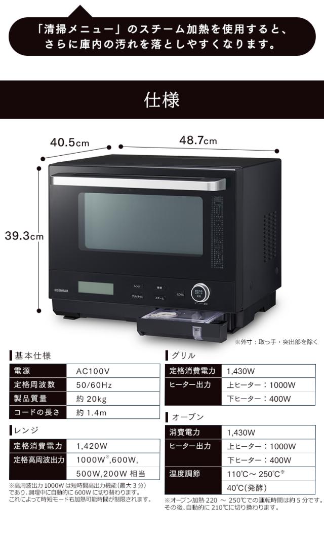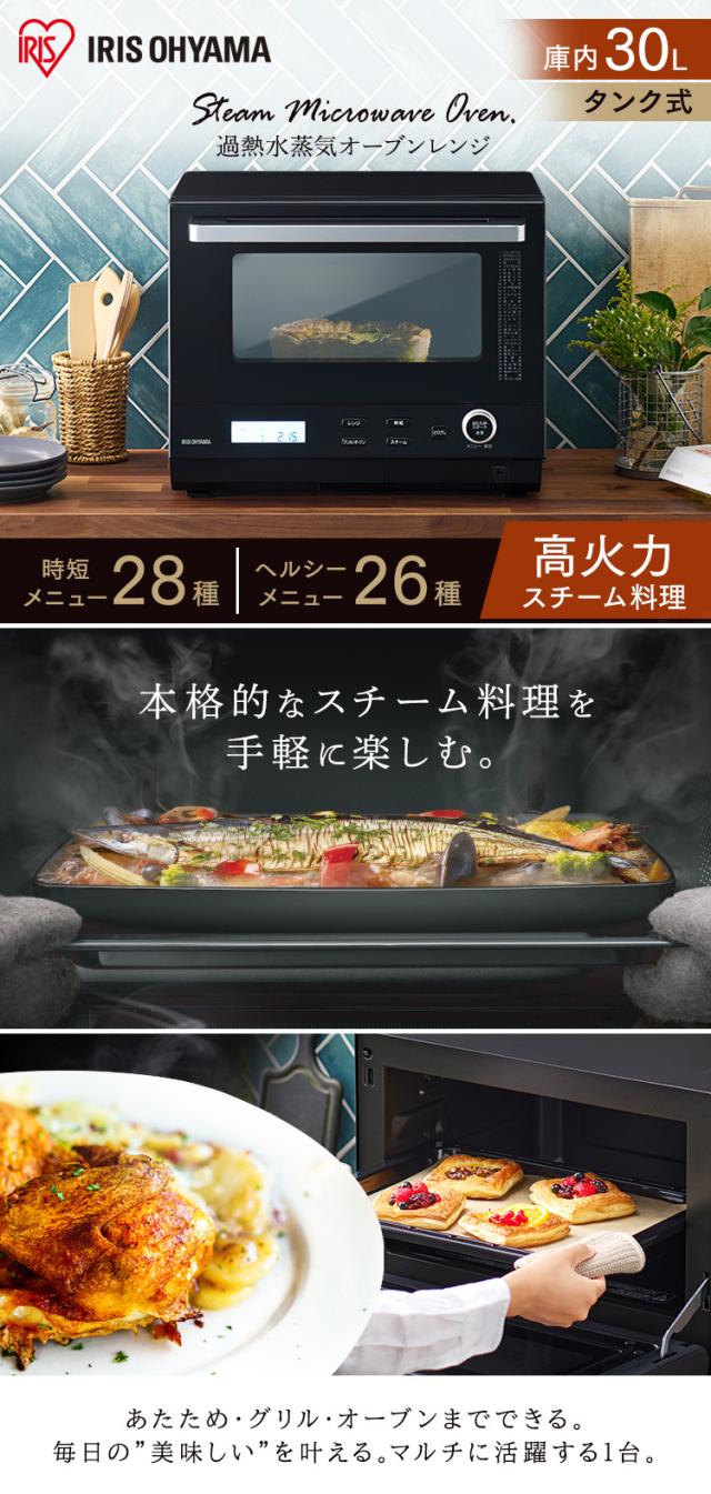 オーブンレンジ 電子レンジ アイリスオーヤマ 30L タンク式スチームオーブンレンジ 30L MS-F3001-B ブラック 電子レンジ オーブンレンジ オーブン グリル スチーム レンジ 過熱水蒸気 タンク式 フラットテーブル 時短ブースト 送料無料