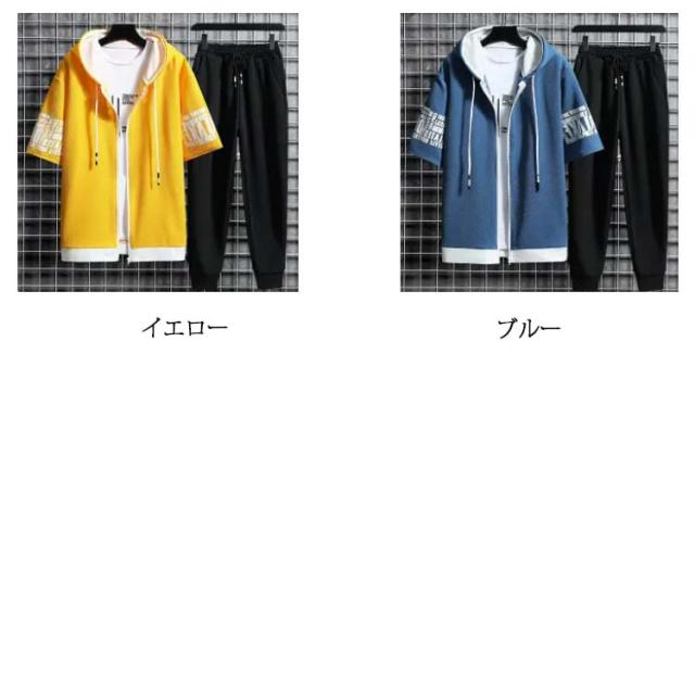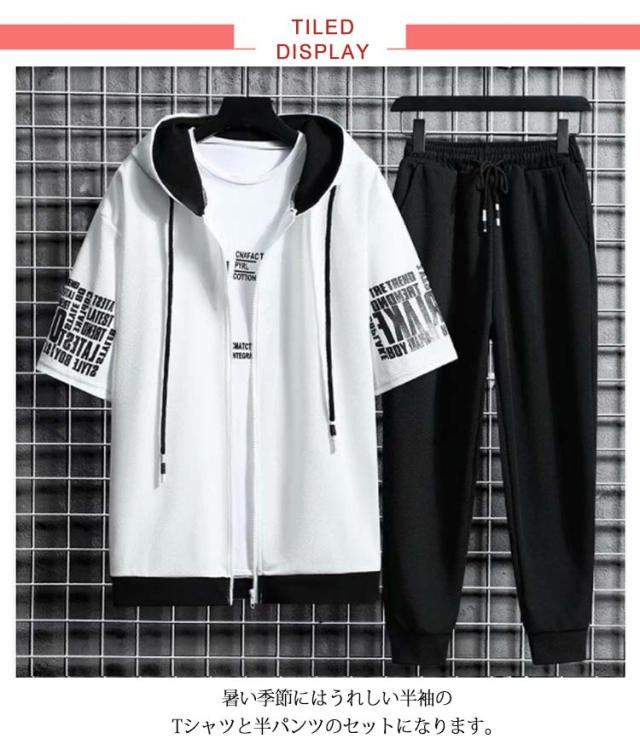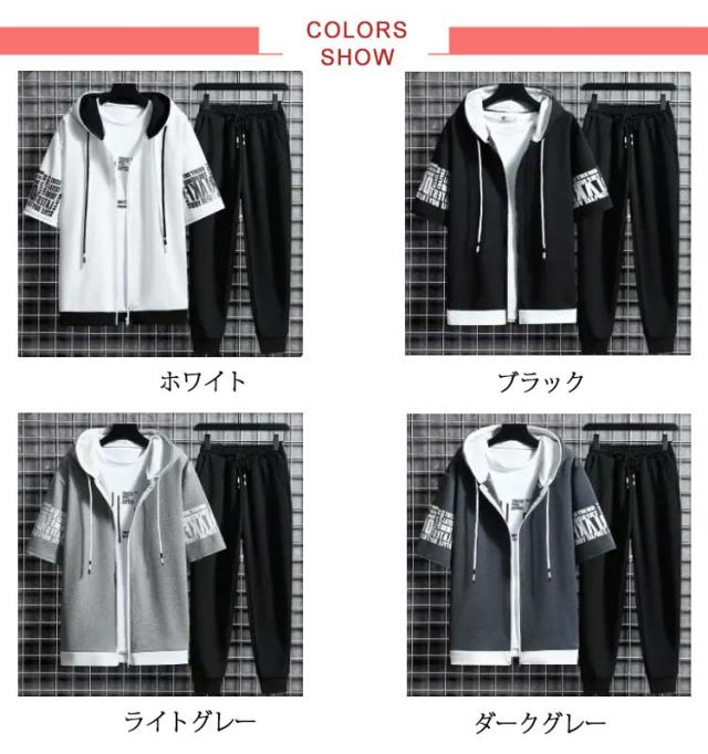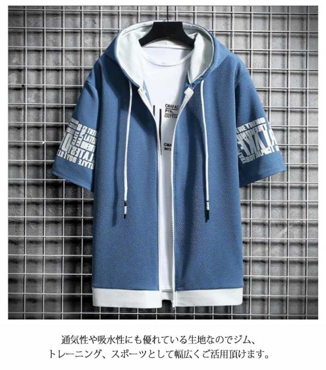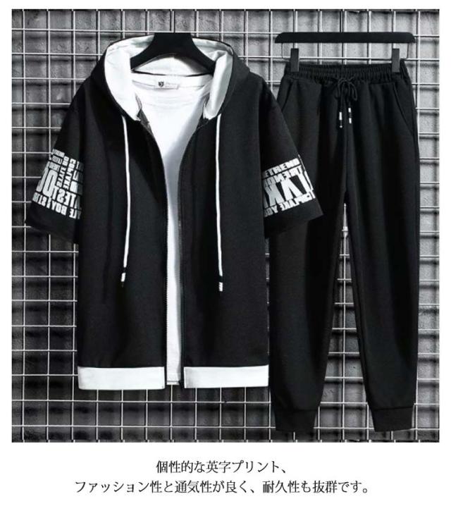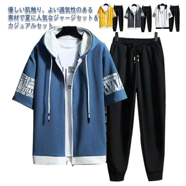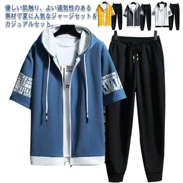 半袖パーカー メンズ セットアップ 上下セット フード付き パーカー 半袖 冷感 ロングパンツ 長ズボン 運動着 スポーツウエア ルームウェア 部屋着 大きサイズ 夏 夏服 夏物 春服 秋服 送料無料