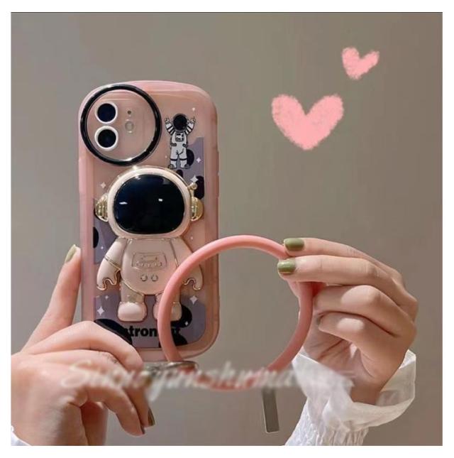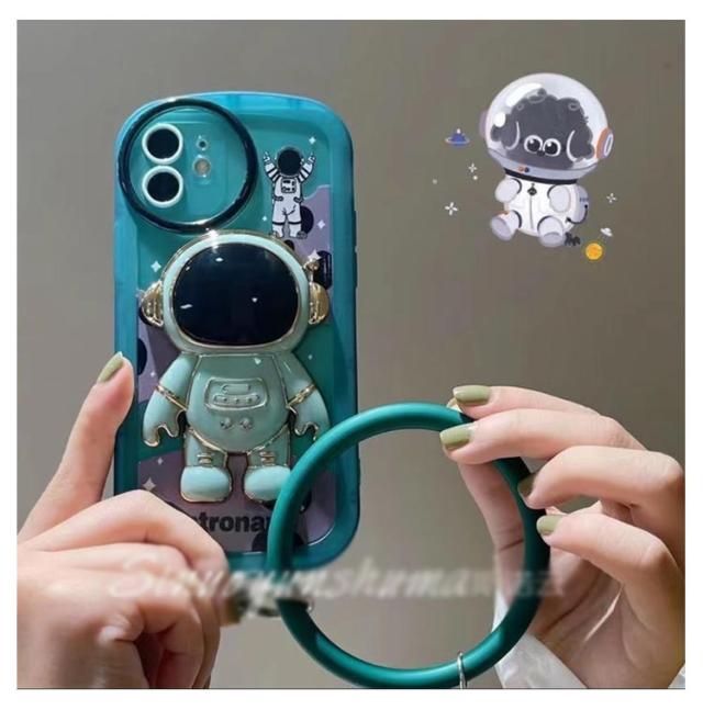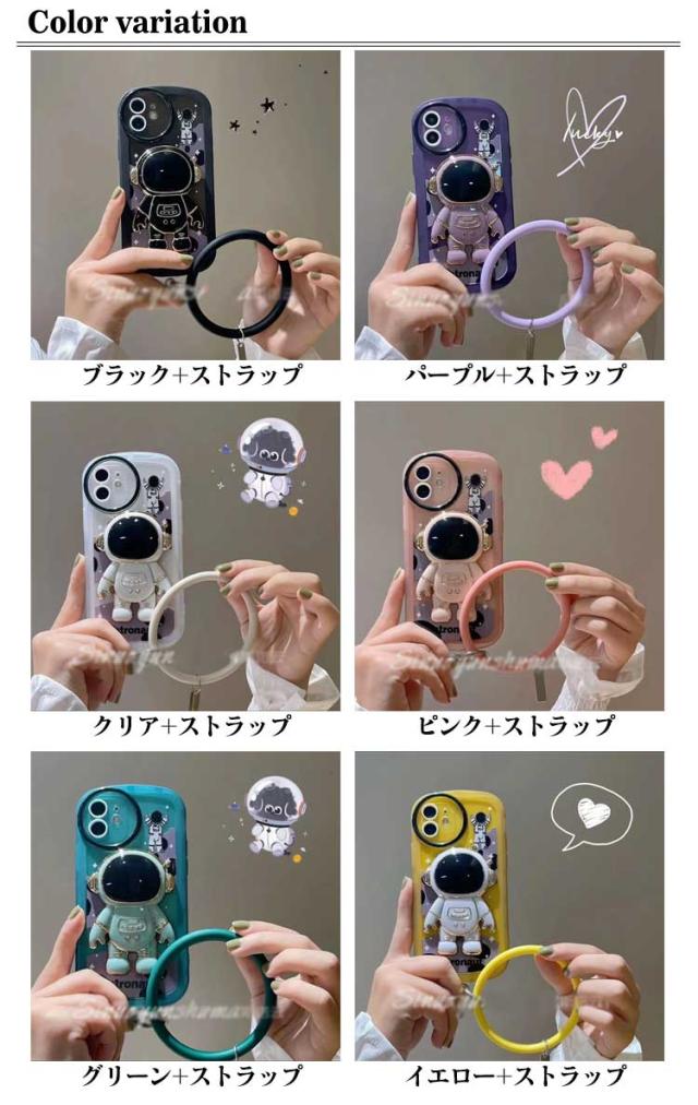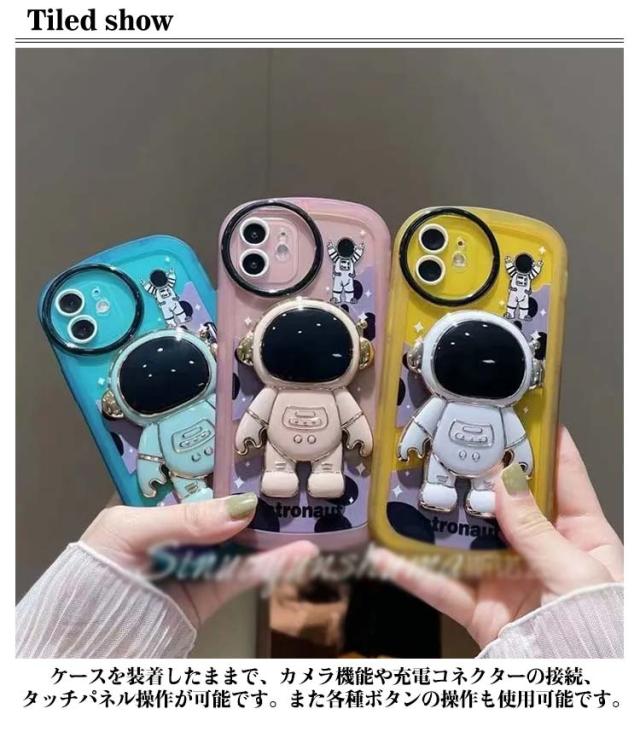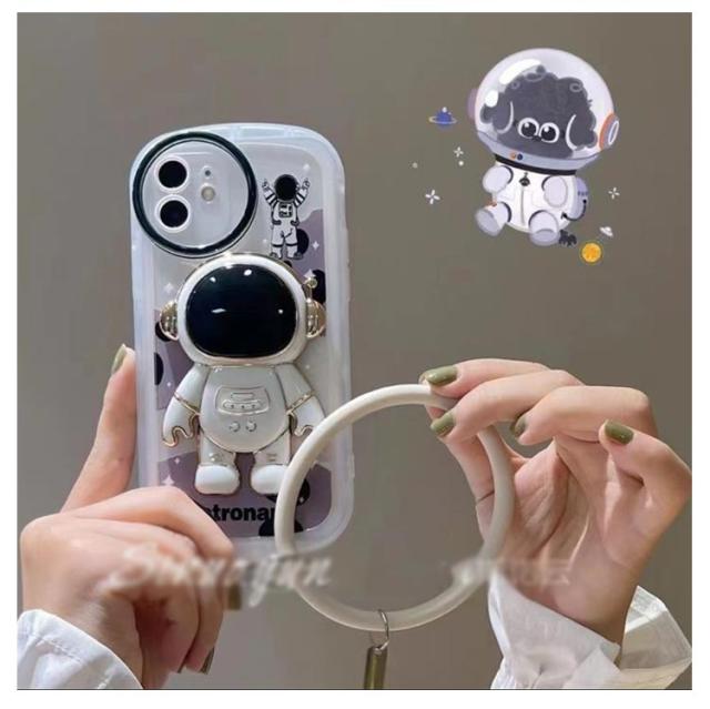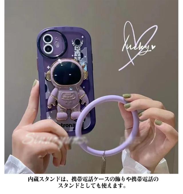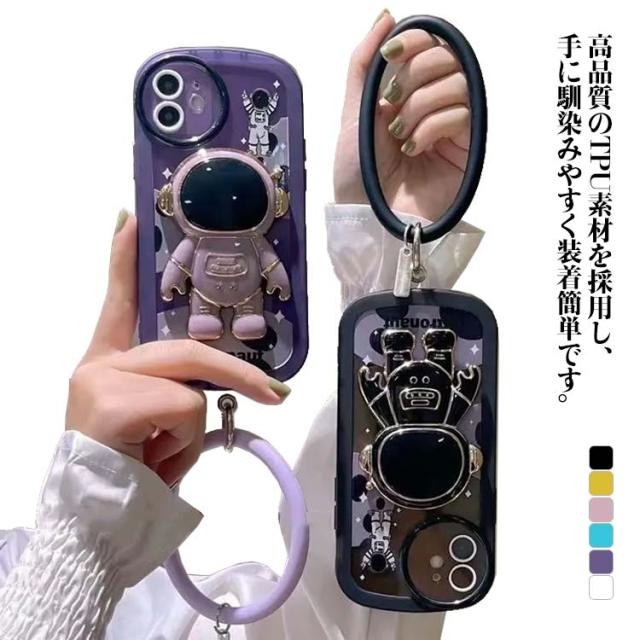 iphone13 ケース iphone12 ケース iphone11 スマホケース iphone12 ケース iphone12 pro max iphone13pro カバー おしゃれ かわいい ケース 韓国 iPhone用宇宙飛行士隠しスタンドケース ハンドストラップ付き