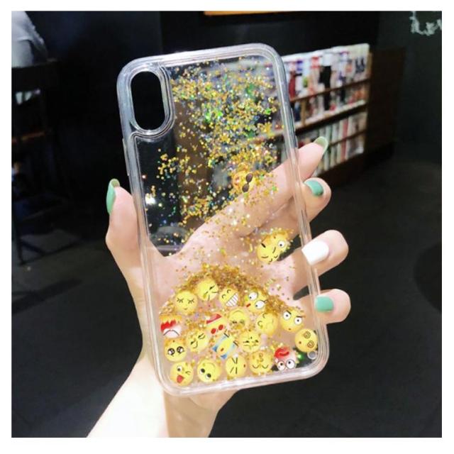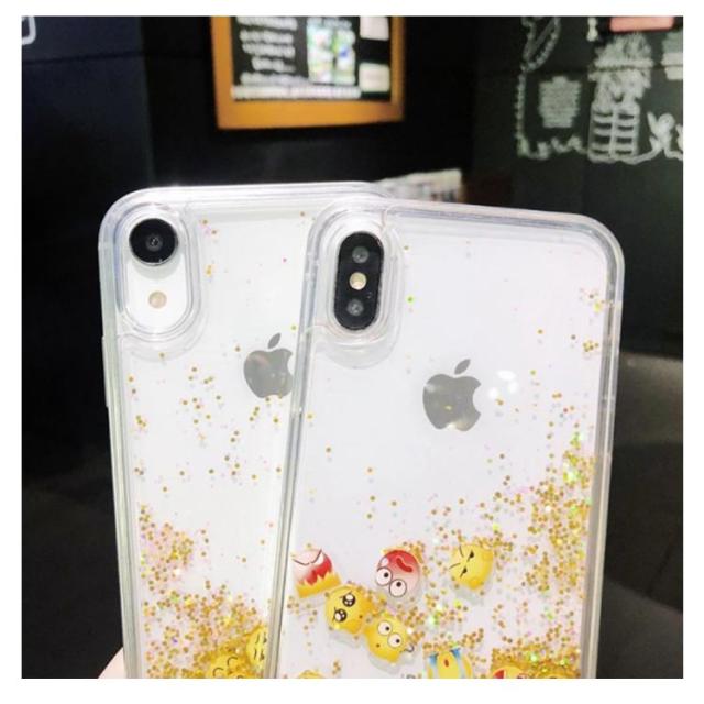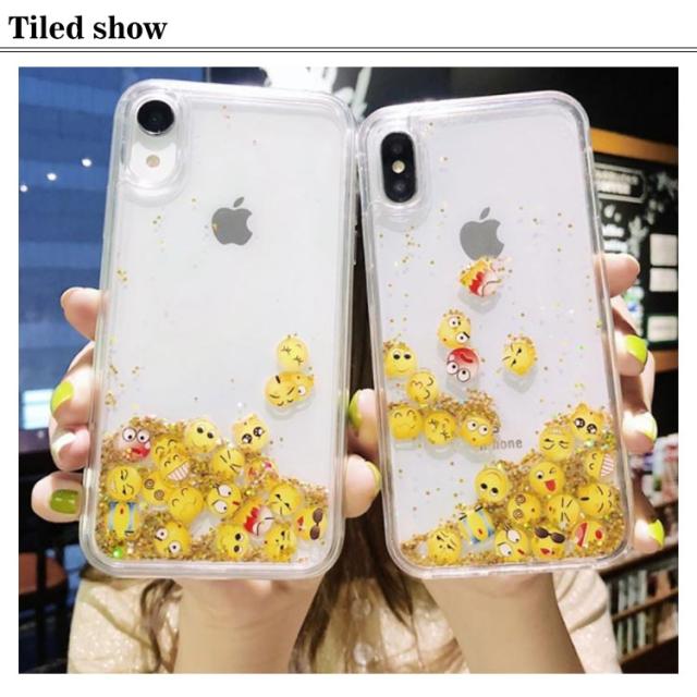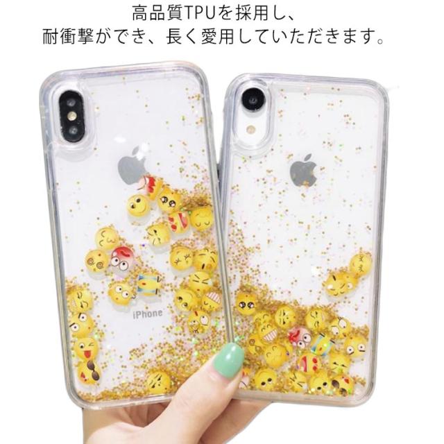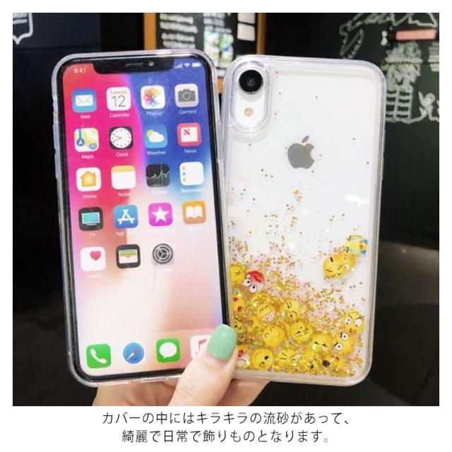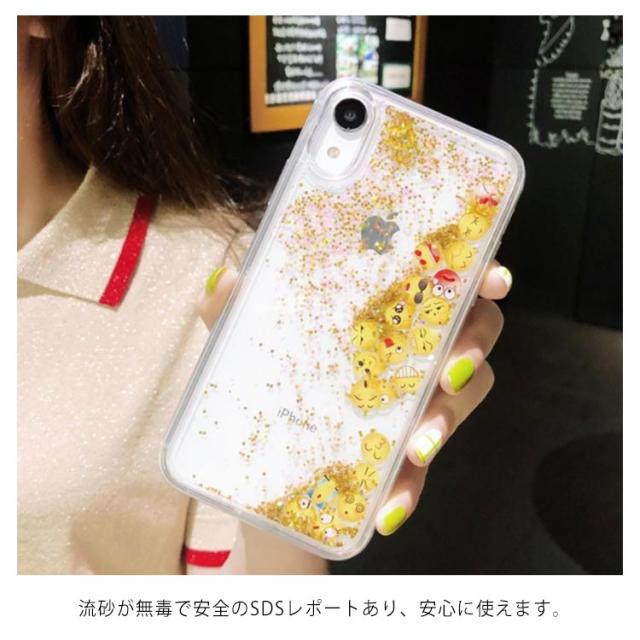 iPhoneケース iPhone13 12 11pro Max iPhoneXr Xs X iPhone 8 Plus 7 スマホケース 流砂 ラメ 顔文字 アイコン ゴールド 可愛い キラキラ 萌え 透明 グリッター TPU