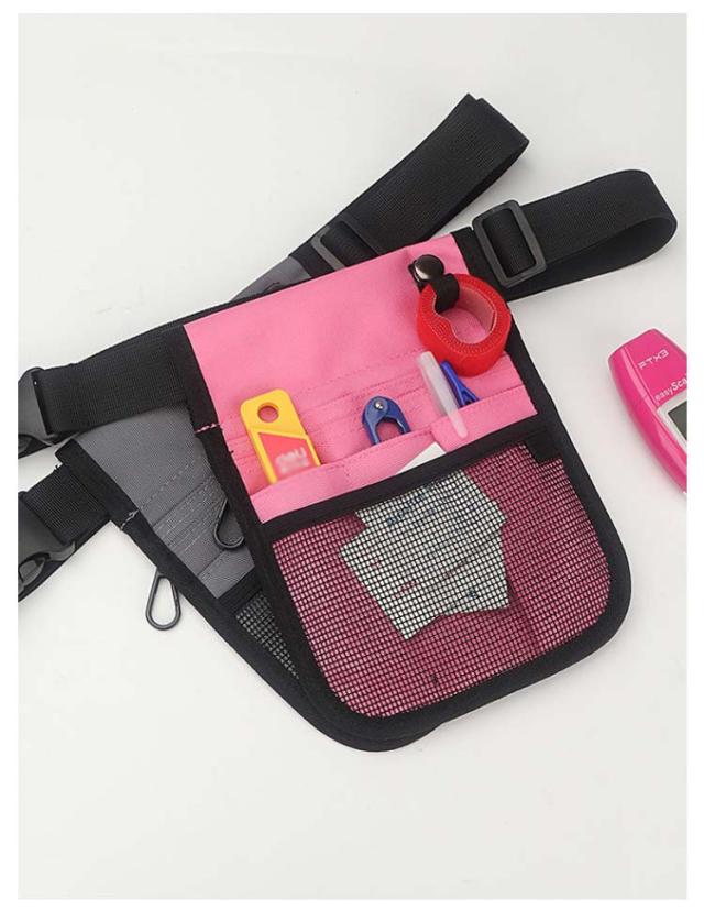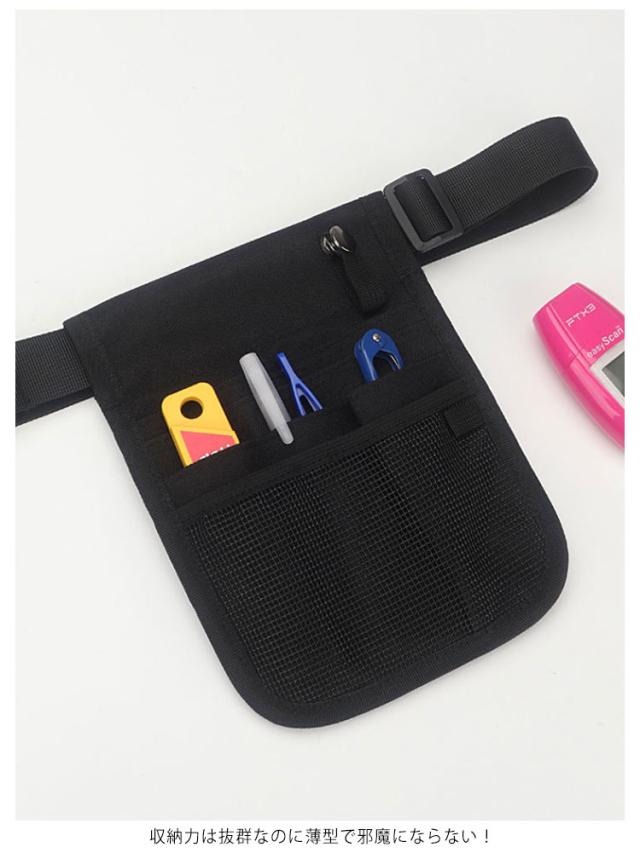 | カジュアルでおしゃれなナースポーチ。 多機能な6つのポケットでペンもスマホもメモ帳も収納できる。 ベルトはワンタッチ式で簡単に取り外しができます。 収納力は抜群なのに薄型で邪魔にならない! 接客・介護・各種作業に最適です! | |