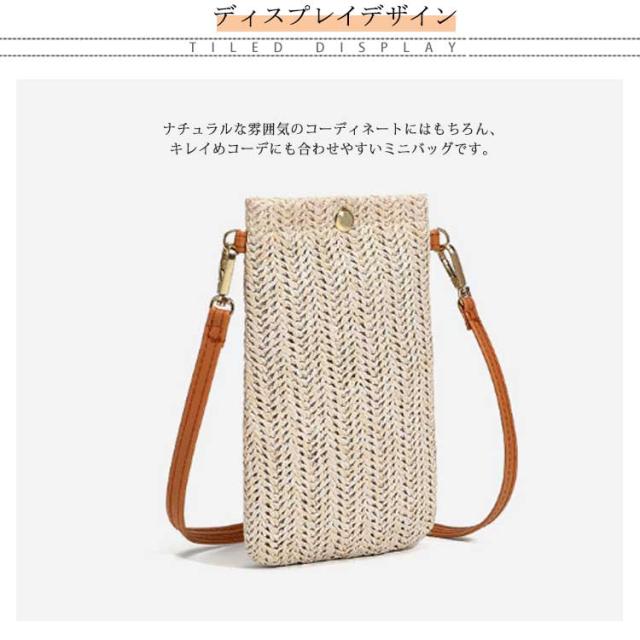 | 編み込みのポリエステル糸のスマホポーチ。 ミニ財布、スマホなどが入るミニマムなサイズ。 フェイクレザーのストラップがトレンド感があり、ファッションのポイントになってくれます。 ナチュラルな雰囲気のコーディネートにはもちろん、キレイめコーデにも合わせやすいミニバッグです。 | |