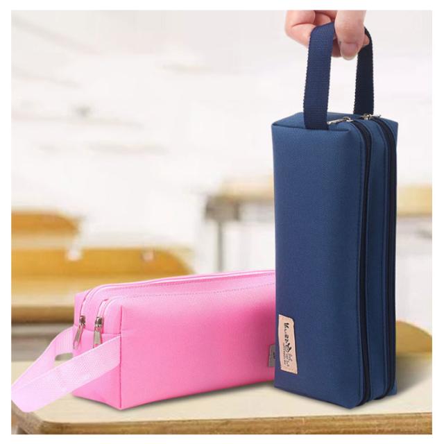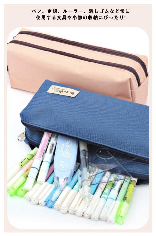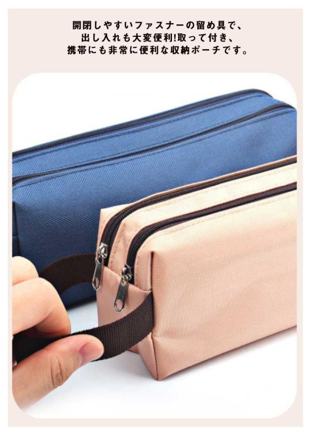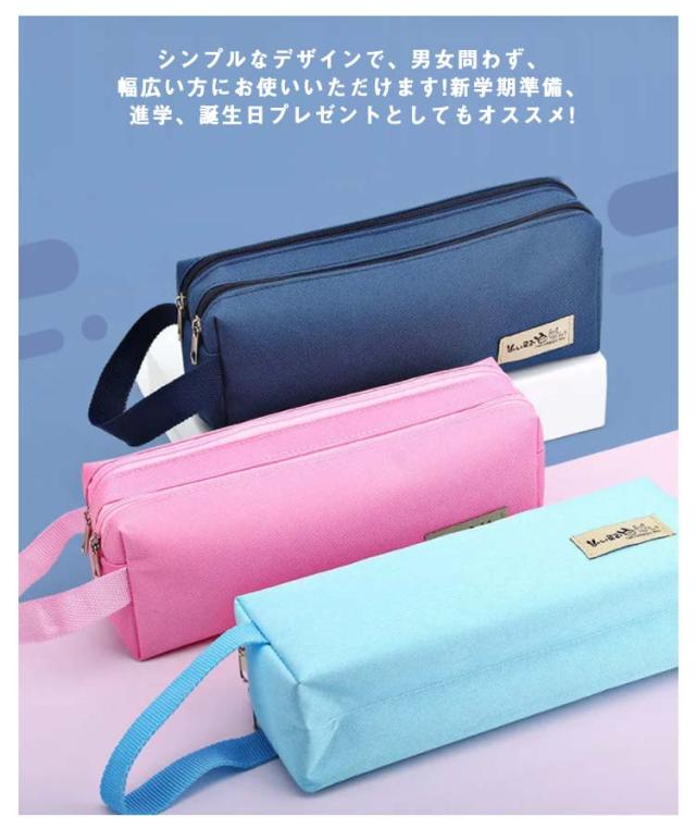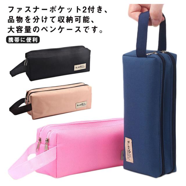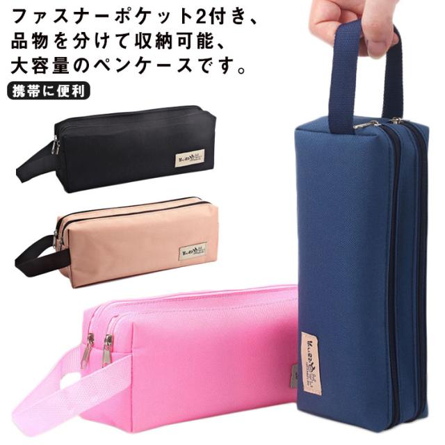 大容量ペンケース 筆箱 中学生 大学生 仕切り収納 ペンポーチ ナイロン 防水 ポケット2つ 取手付き 携帯に便利 多機能 文具収納ケース 小物ポーチ シンプル
