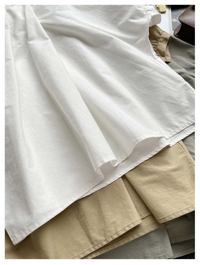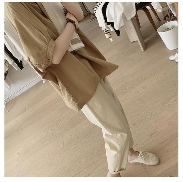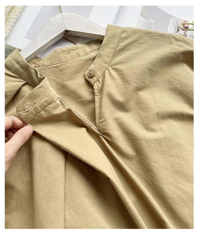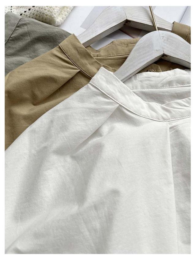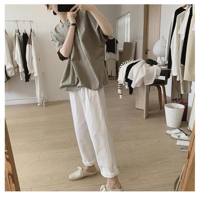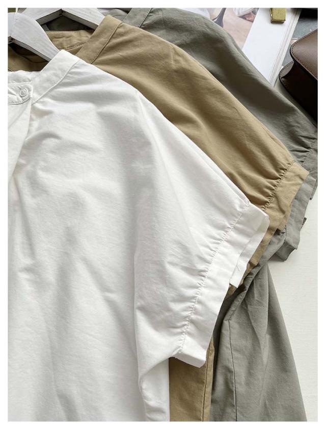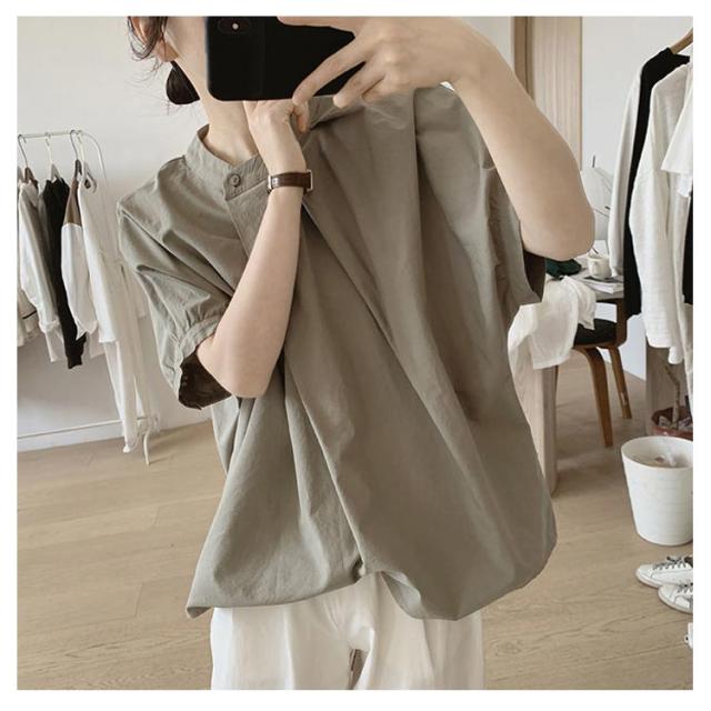 ドルマン袖 トップス 半袖 ブラウス シャツ レディース 送料無料 スタンドカラー プルオーバー タック 綿 韓国ファッション