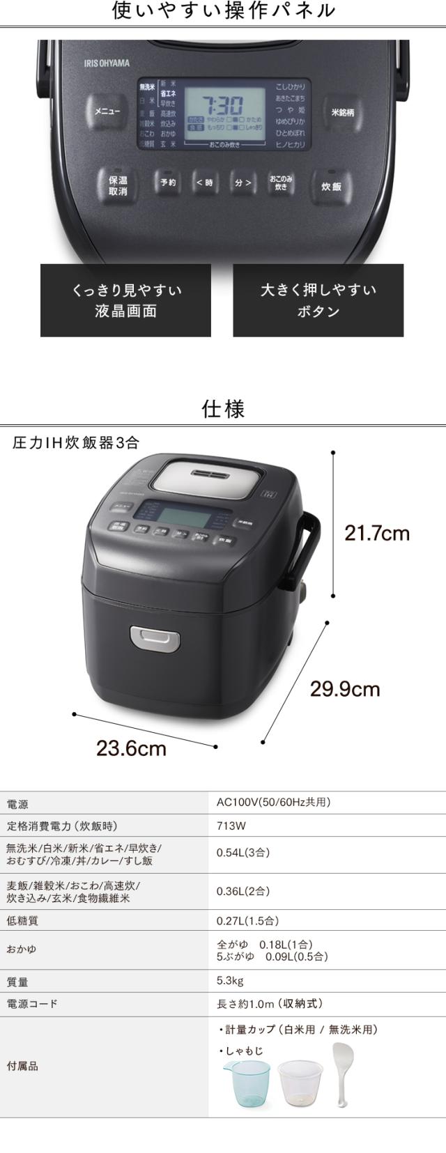 炊飯器 3合 一人暮らし 圧力IH アイリスオーヤマ アイリス 3合炊き 圧力炊飯器 圧力IH炊飯器 IH炊飯器 IH 炊飯ジャー 銘柄炊き 省エネ 早炊き ブラック 黒 RC-PDA30