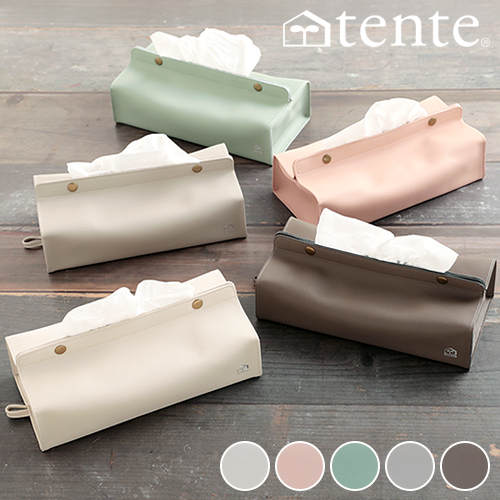 生活感を上手に隠しておしゃれなお部屋にしてくれる、ティッシュボックスカバー「tente/テンテ」。どこの家庭にも必要な「ティッシュペーパーボックス」を、その人やその部屋のインテリアに合うようなデザインで覆ってしまいましょう、という発想から「tente」が誕生しました。 「tente」はその独特の形状のおかげで、ティッシュペーパーが最後の1枚まで無理なく取り出せます。ループ付きなので壁掛けでも使えてとっても便利。