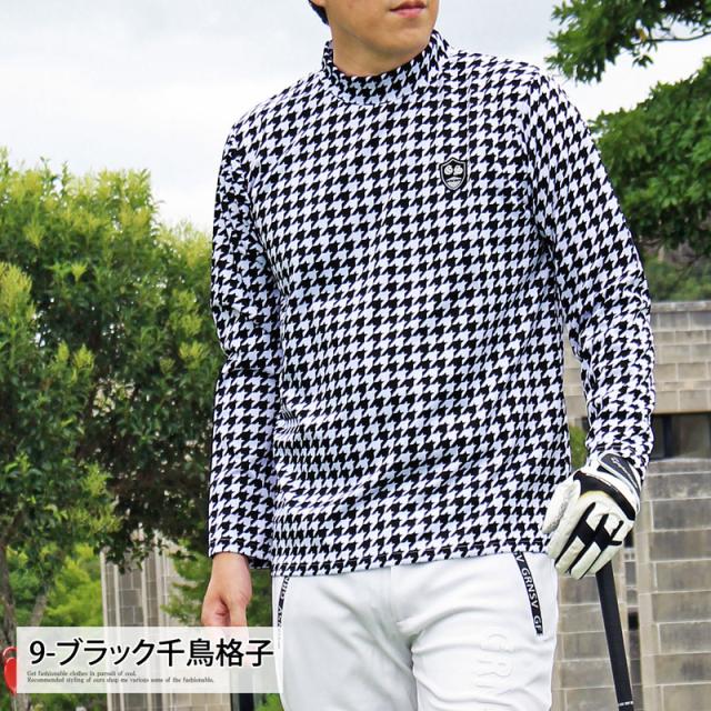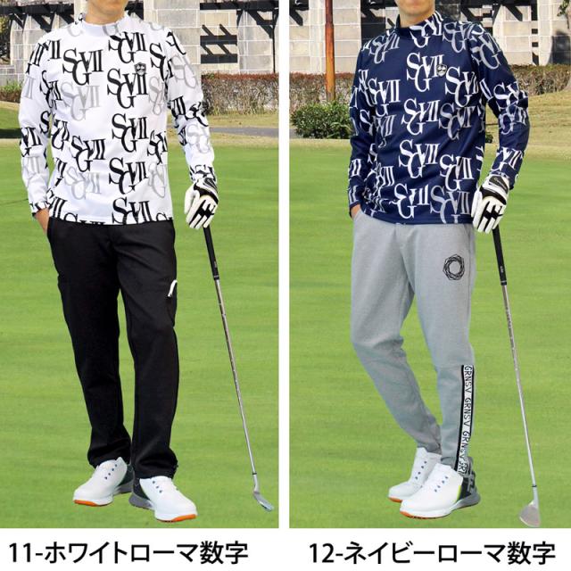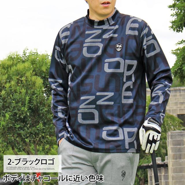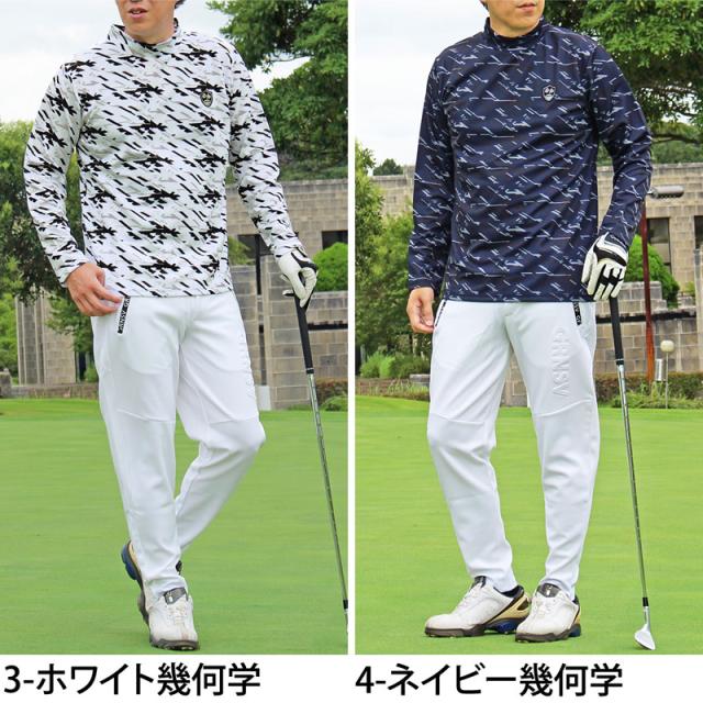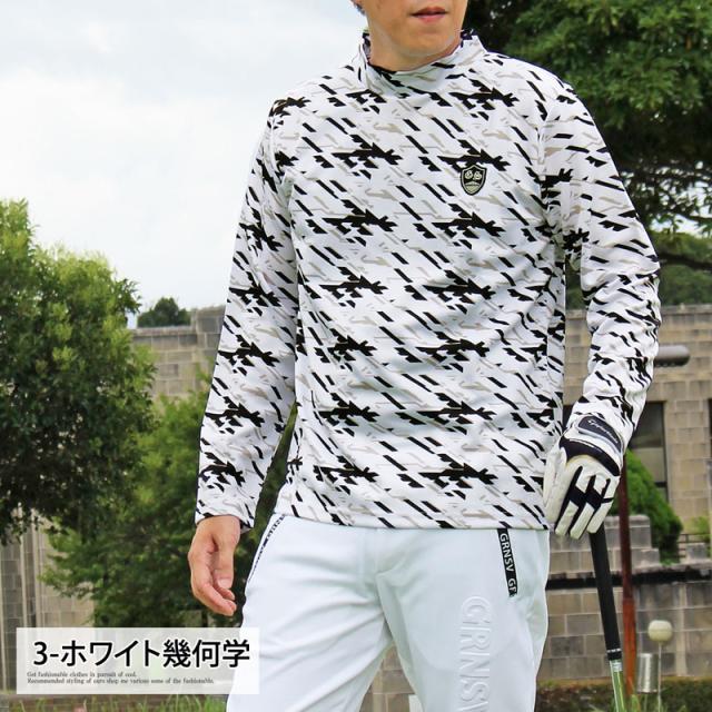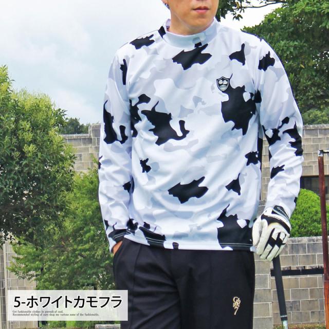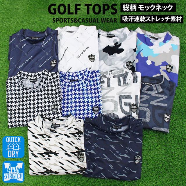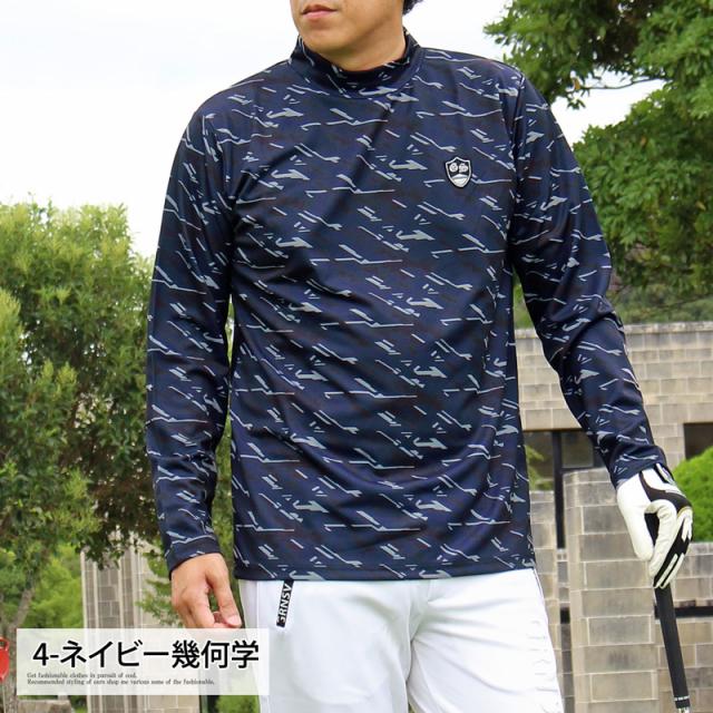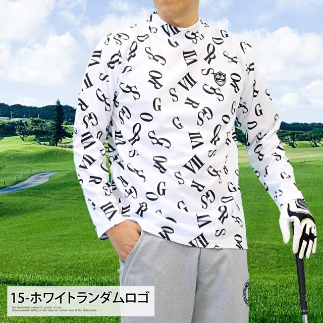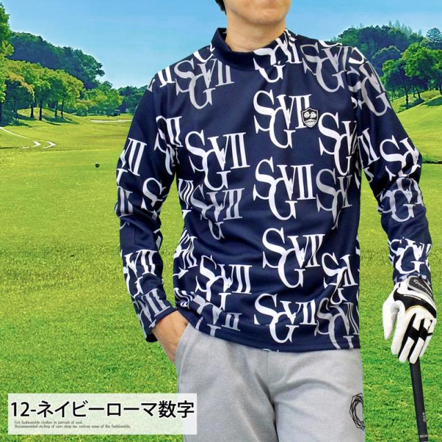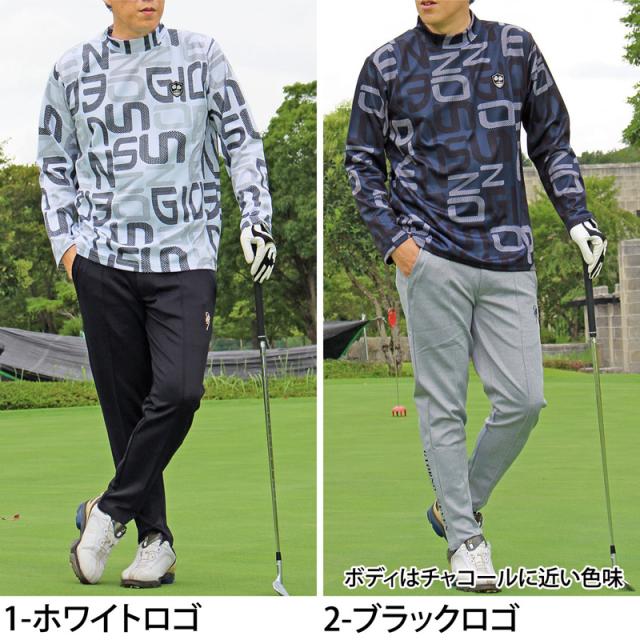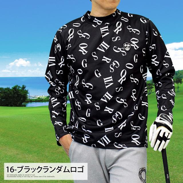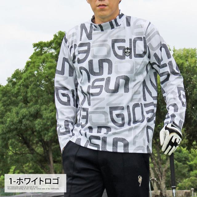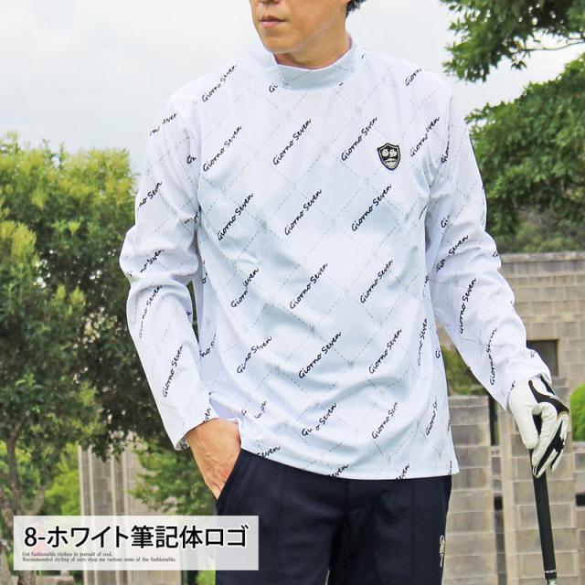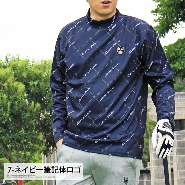 M~XXL 新作 送料無料 ゴルフウェア モックネックシャツ メンズ 大きいサイズ GIORNO SEVEN ハイネックTシャツ 長袖 トップス 総柄 ロゴ 機能性 おしゃれ ストレッチ 吸湿速乾 ドライ 春夏 ゆうパケ