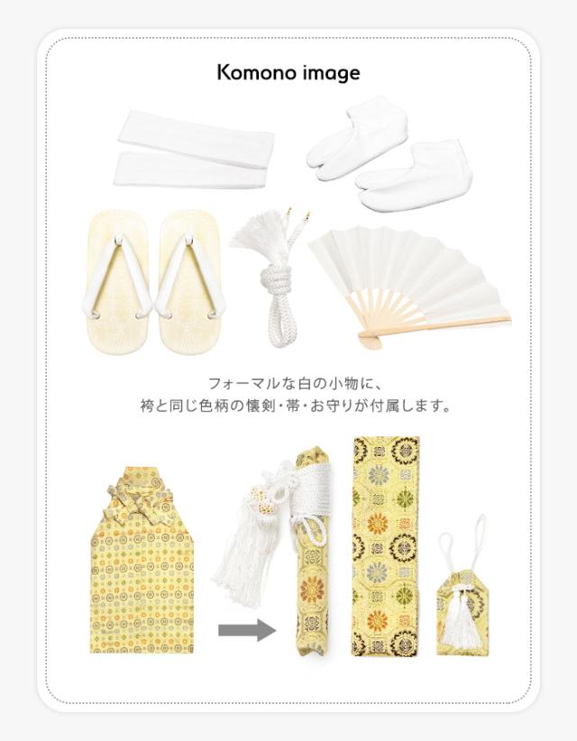[素材] 着物・羽織・襦袢・袴・角帯・懐剣袋・お守り袋:ポリエステル100% / 羽織紐:レーヨン100% / 雪駄:鼻緒・PU/底・合皮