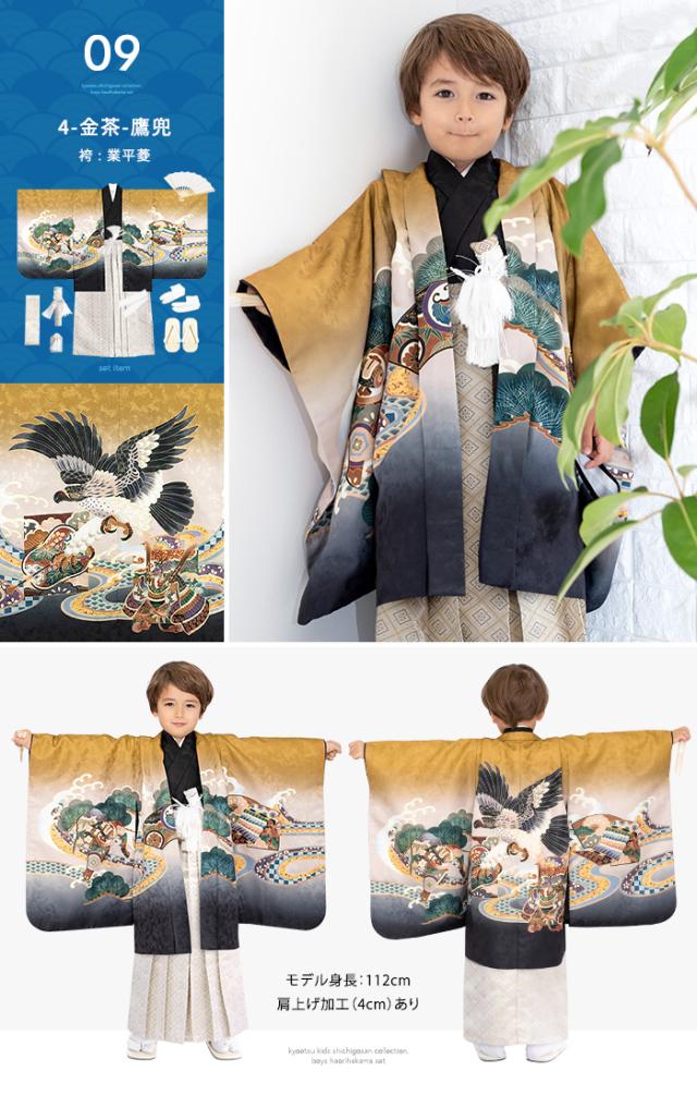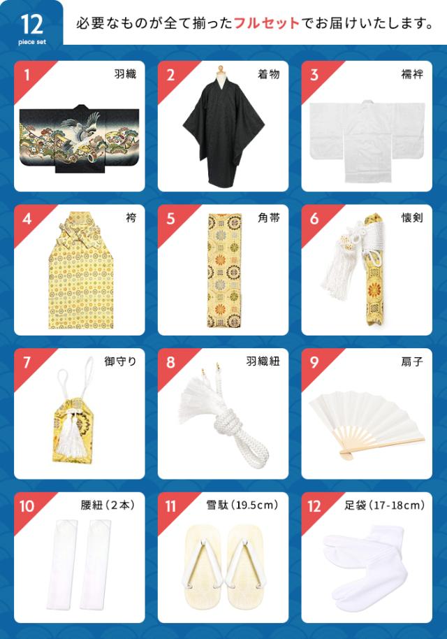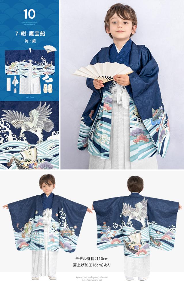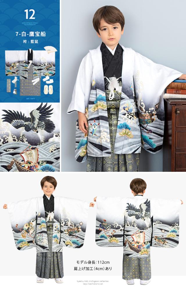 七五三 着物 男の子 5歳 【全て揃った豪華12点フルセット】 袴セット 購入 フルセット 販売 草履 小物 絵羽 袴 セット 古典柄 鷹 兜 男児 753 羽織袴 レトロ 宝船 子供 五歳 ボーイズ 初心者でも安心のフルセット(rg)