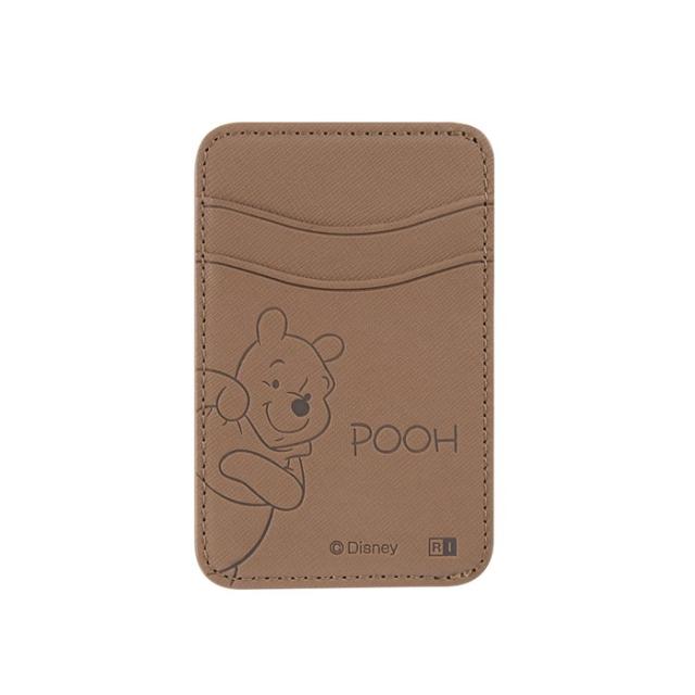スマホ カードケース プーさん レザー ブラウン 茶 くまのプーさん ポケット カード入れ カード収納 カードホルダー 背面ポケット ICカード 貼るだけ 簡単 粘着 キャラクター かわいい 可愛い