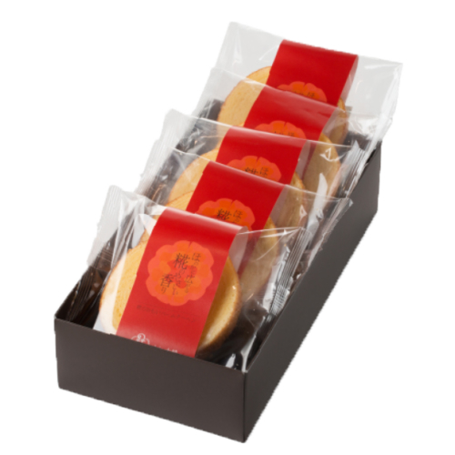 『糀甘酒』を生地に加え、弱火でじっくり時間をかけて繊細に焼き上げています。『糀甘酒』の風味を生かしつつ、自然な甘さと、しっとりなめらかな口どけにこだわりました。お土産やギフトにも喜ばれるミニサイズを5個セットに。