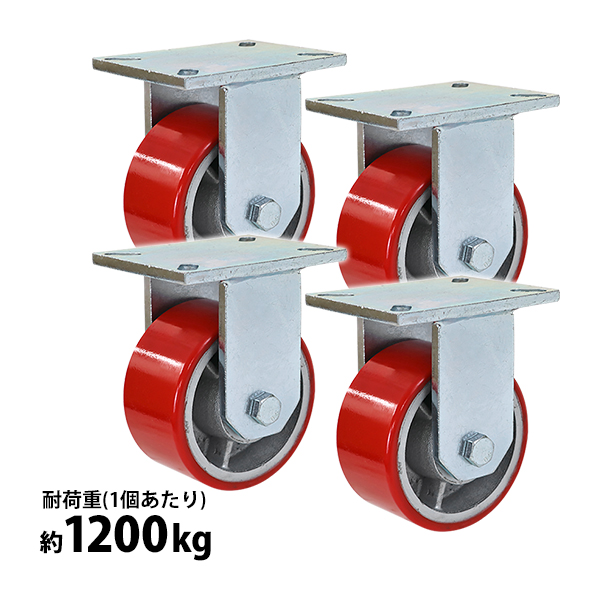キャスター 固定キャスター 重量用 PU製 4個セット 重量用キャスター 耐荷重約1200kg(1個あたり) 車輪直径約151mm 幅約76mm グリスニップル付き 固定車 PU車輪 ポリウレタン 工場 倉庫 作業 運搬 cstrpufi060r4p
