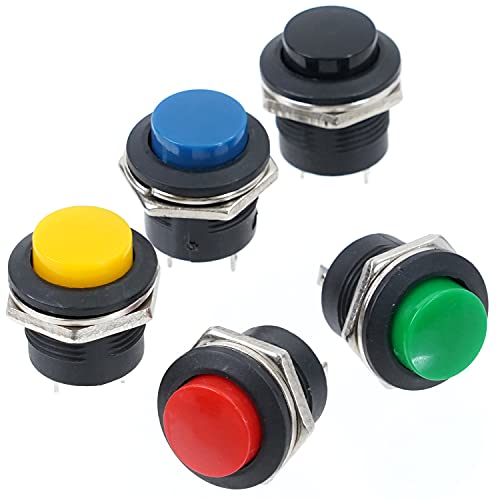 [Aluba] プッシュスイッチ モーメンタリタイプ (5色/計10個セット) 押しボタン スイッチ 6A/125V 「車や小型家電などに汎用できる 押しボタンスイッチ 」 ノンロック モーメンタリスイッチ