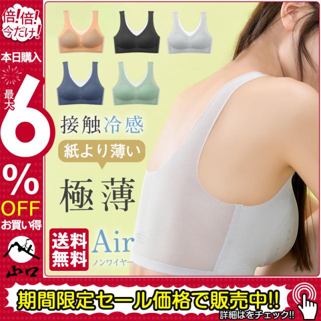 ブラジャー ノンワイヤー 冷感ブラ 超薄 通気 シームレス リラックス楽ルームブラ カップ付き下着 大きいサイズ スポーツ 肉脇高