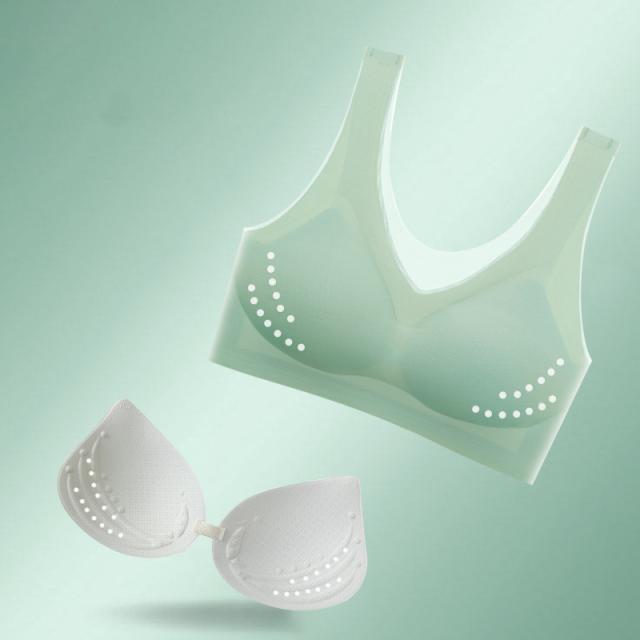【取り外しできるパッド】通気性と弾力性を兼ね備えています。両カップで24個の通気口があります。