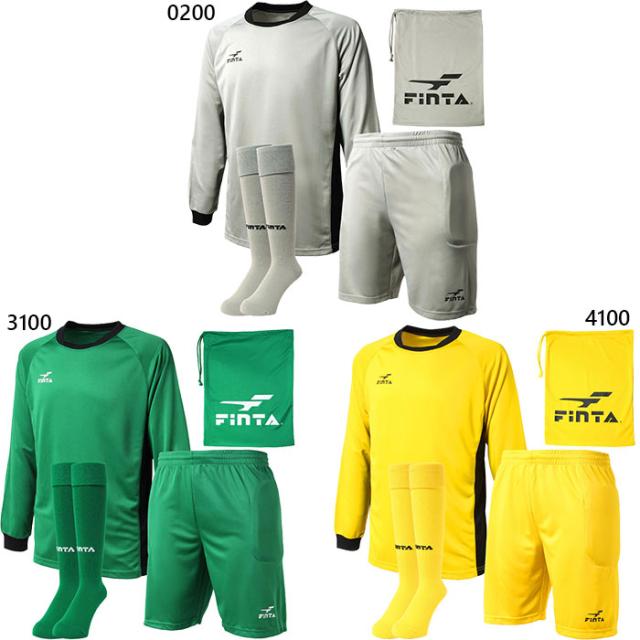 フィンタ メンズ キーパー3点セット サッカーウェア フットサルウェア トップス ボトムス ソックス パンツ 長袖シャツ ゴールキーパー ストッキング グレー イエロー グリーン 灰色 黄色 緑 送料無料 FINTA FT5982