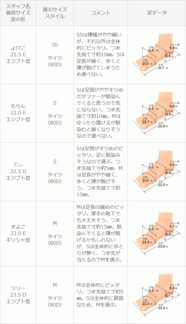 ※足の形には個人差があります。スタッフ試着感想は参考程度にお考え下さい。