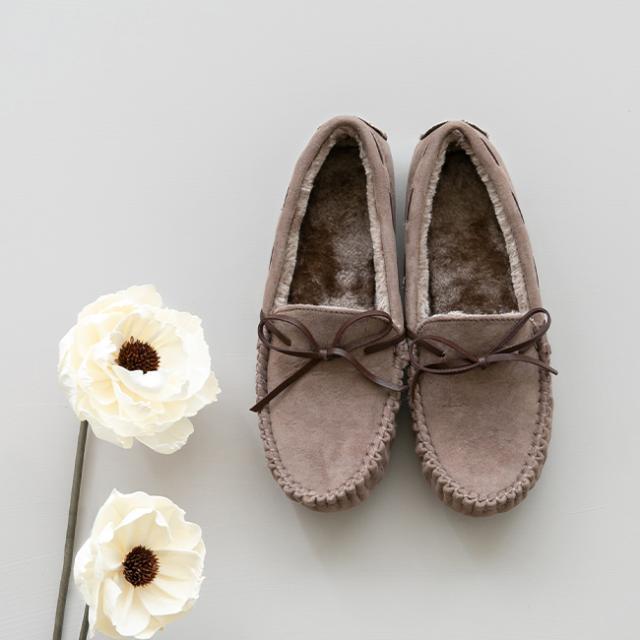 シンプルなデザインが秋冬コーデを軽やかに仕上げるファーモカシン。