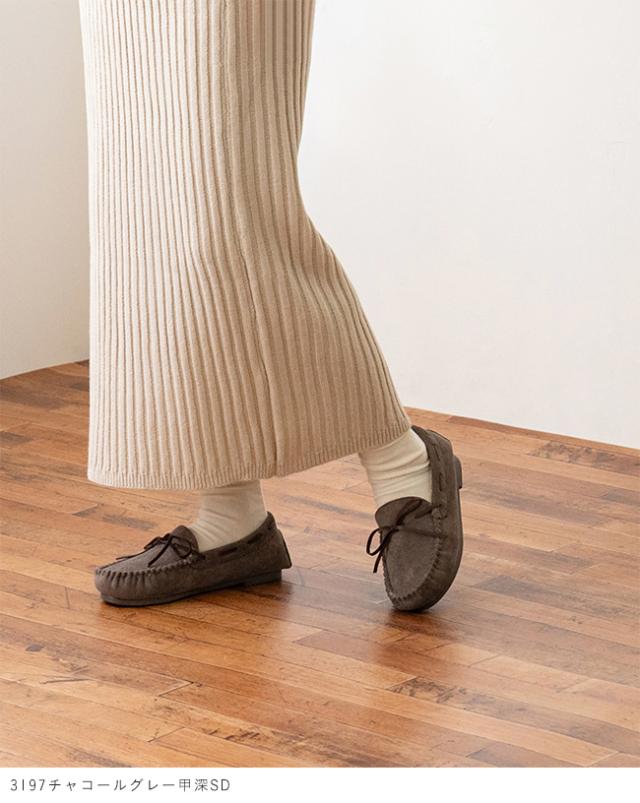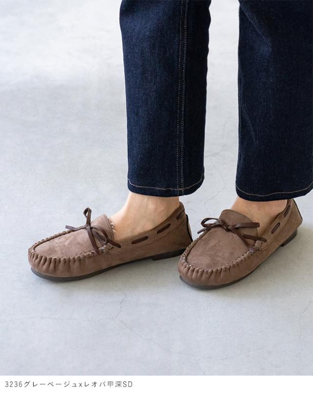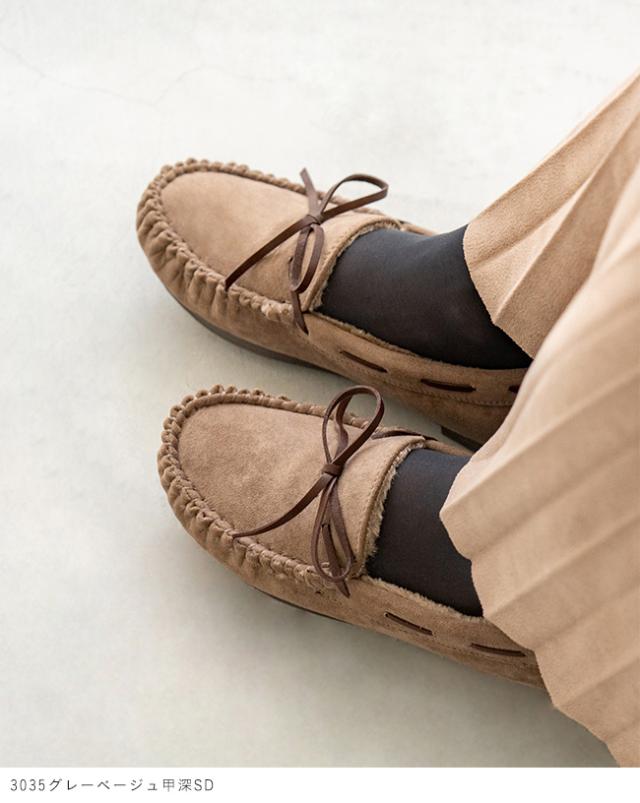 『ふわふわあったかなのにすっきり美シルエット 撥水リボン甲深モカシン