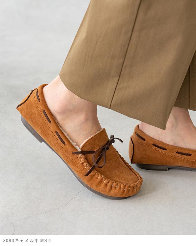 モカシン レディース モカシンシューズ カジュアル 内ボア ファー ムートン ぺたんこ 甲深 送料無料 プレゼント