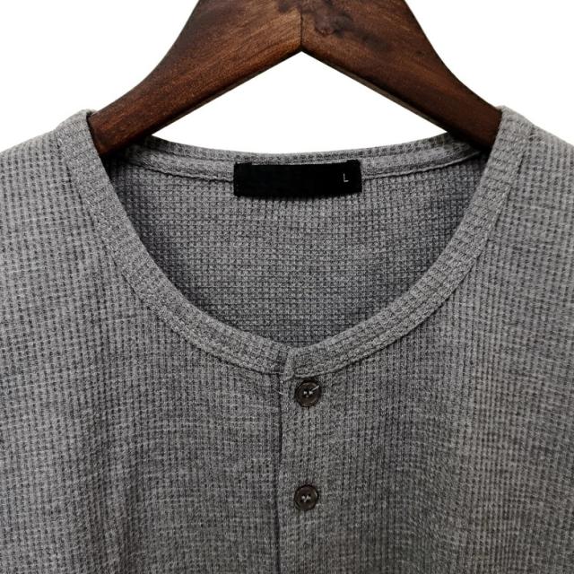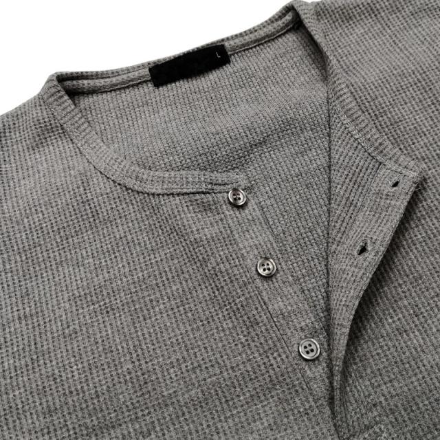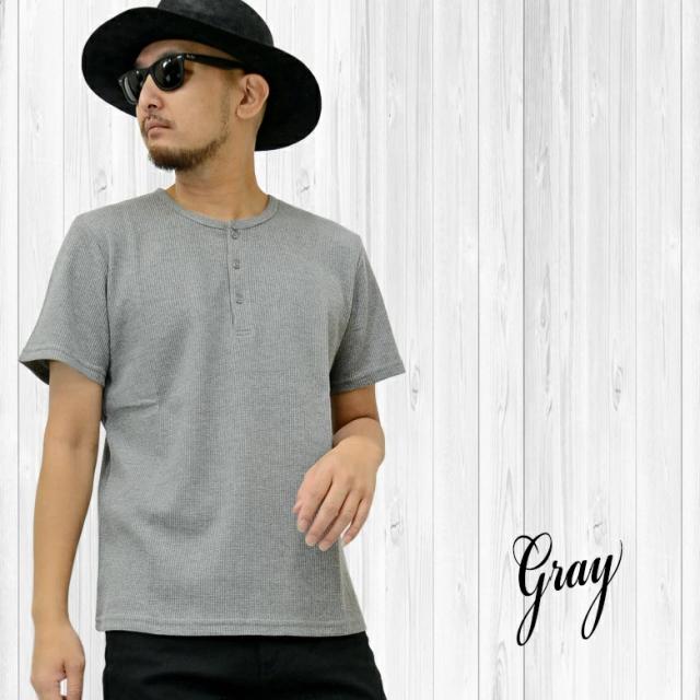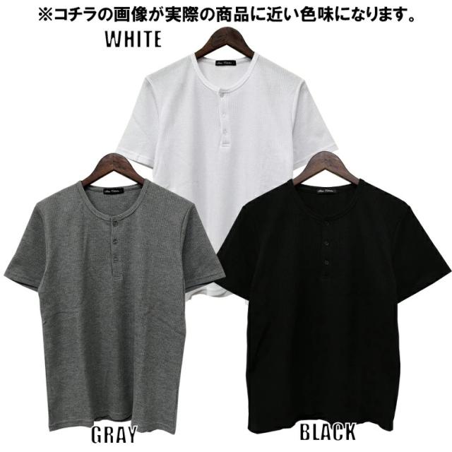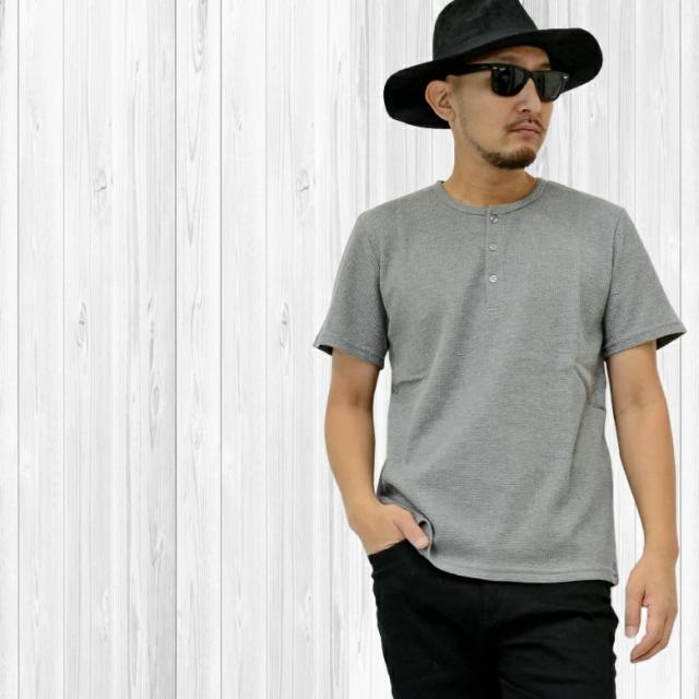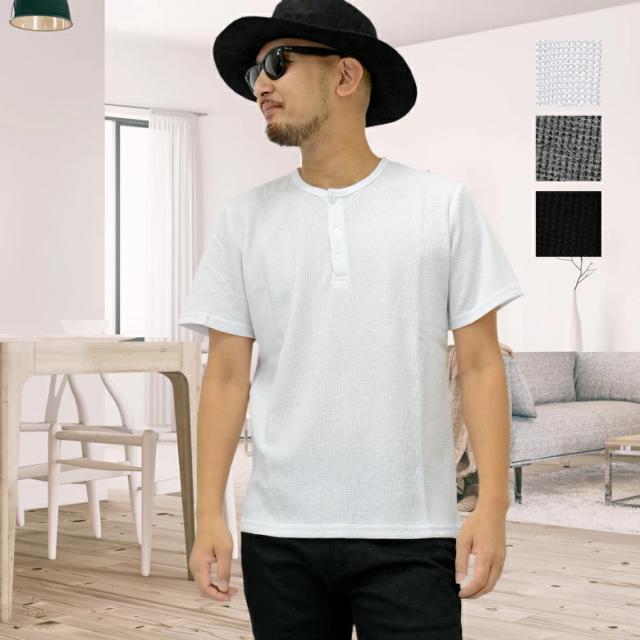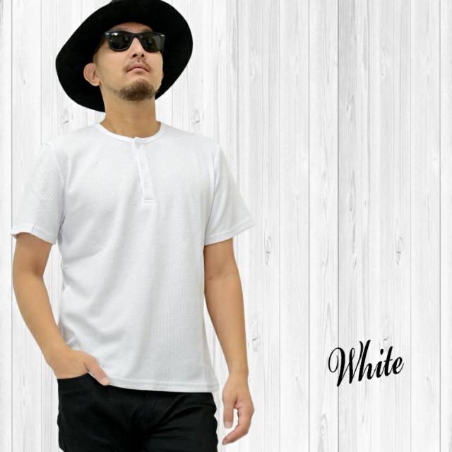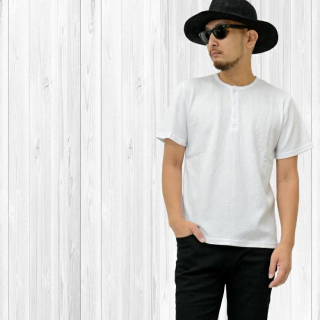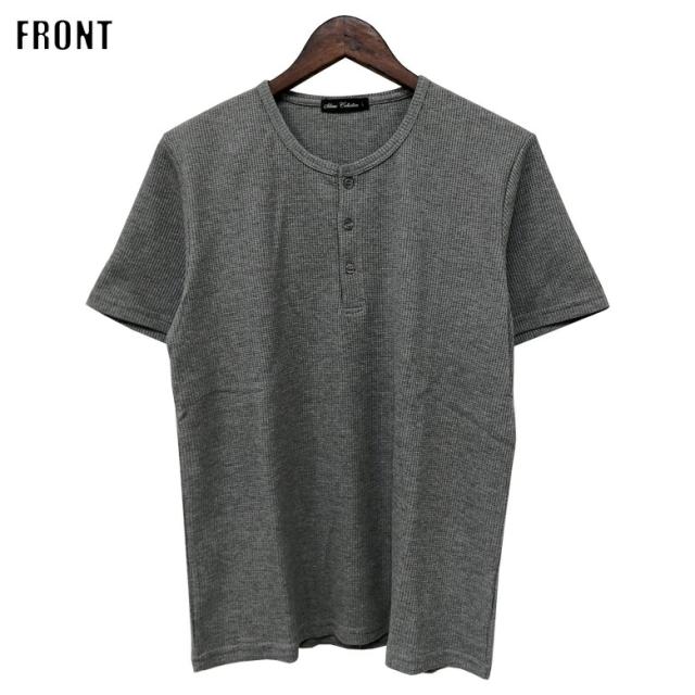 【閉店セール】ワッフル素材 ヘンリーネックTシャツ 20452 20422 カジュアル ベーシック インナー シンプル 無地 半袖Tシャツ カットソー メンズTシャツ サーマル ワッフル ヘンリーネック 半袖 ホワイト ラック グレー韓国 M L LL