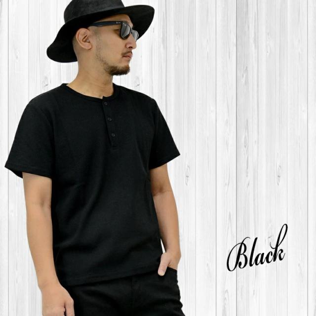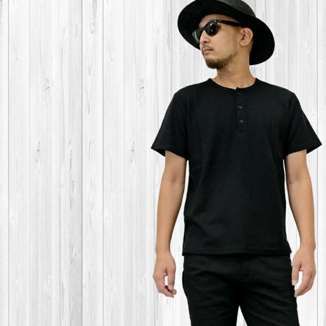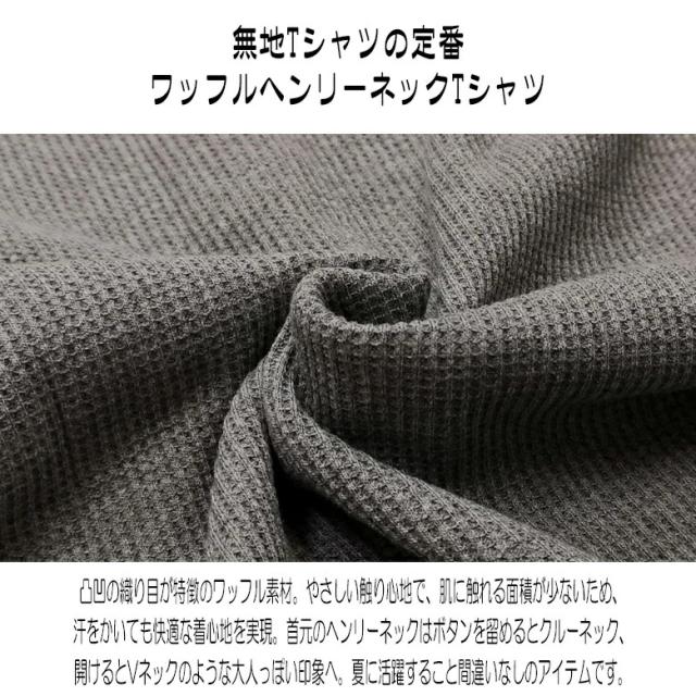凸凹の生地感が特徴のワッフル素材を使用したワッフルヘンリーネックTシャツ。