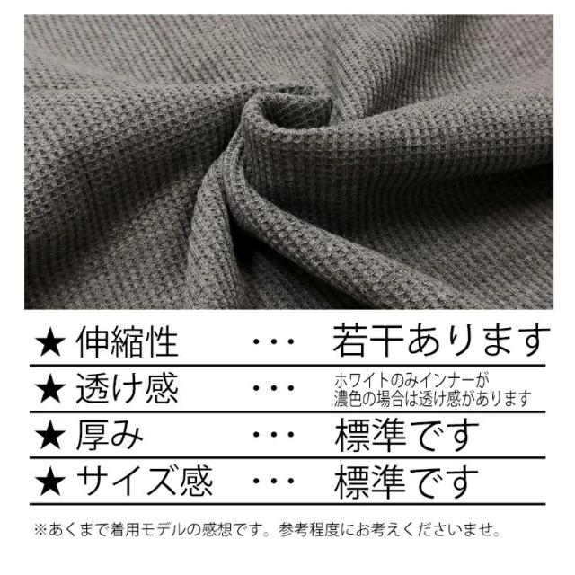 サーマル生地とも呼ばれるワッフル生地は肌に触れる面積が少なく、汗ばむ季節も快適な着心地を実現。