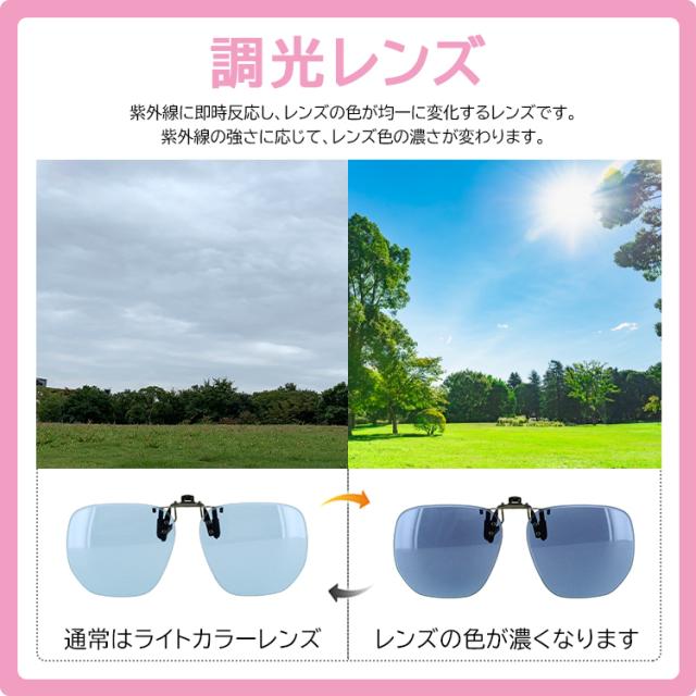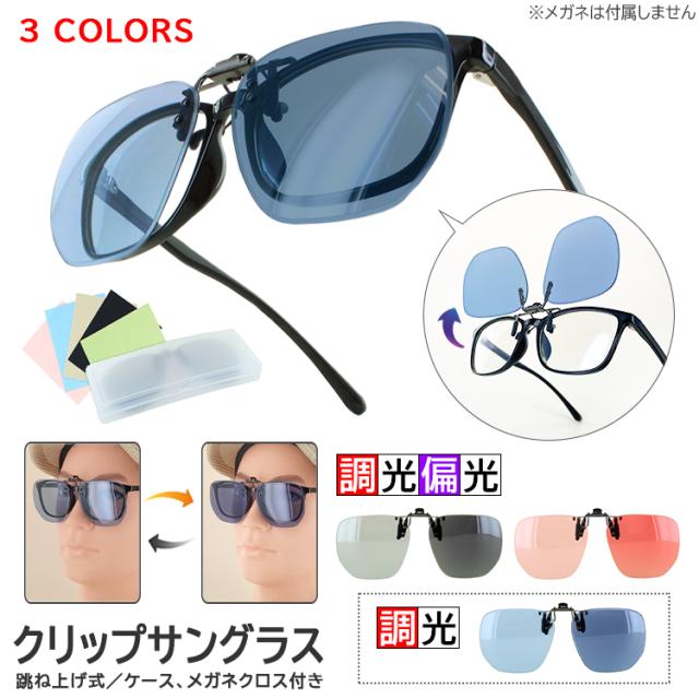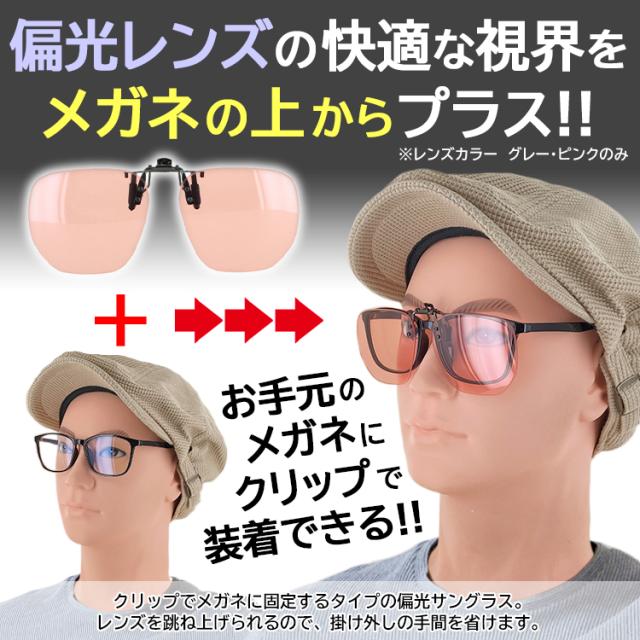 メガネの上から サングラス メガネの上から 跳ね上げ 調光サングラス 偏光 メンズ レディース クリップオン クリップ式サングラス 簡単 ワンタッチ装着 ライトカラー 薄い 色 大きめレンズ UVカット ケース付き おしゃれ 車 運転 釣り ドライブ ゆうパケット送料無料