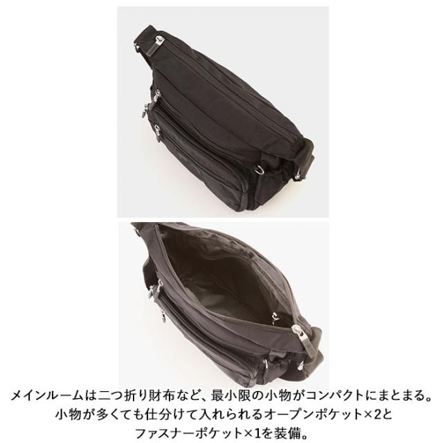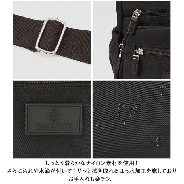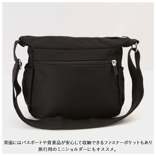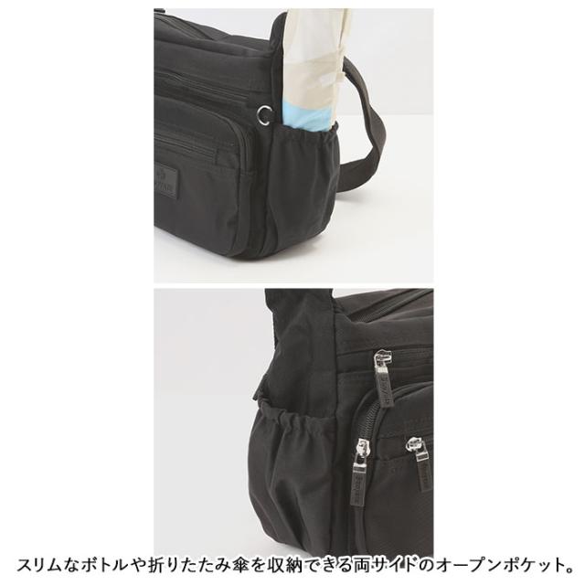 | 商品説明 | ・ワンマイルのお出かけに便利なミニショルダーバッグが登場。 ・メインルームは二つ折り財布など、最小限の小物がコンパクトにまとまる。小物が多くても仕分けて入れられるオープンポケット×2とファスナーポケット×1を装備。 ・フロントにファスナーポケット×3が付いており、パスケース・スマホ・リップクリームなど、頻繁に使用する小物の収納に便利。 ・スリムなボトルや折りたたみ傘を収納できる両サイドのオープンポケット。 ・さらに背面には、パスポートや貴重品が安心して収納できるファスナーポケットもあり旅行用のミニショルダーにもオススメ。 ・しっとり滑らかなナイロン素材を使用!さらに汚れや水滴が付いてもサッと拭き取れるはっ水加工を施しておりお手入れも楽チン。 |