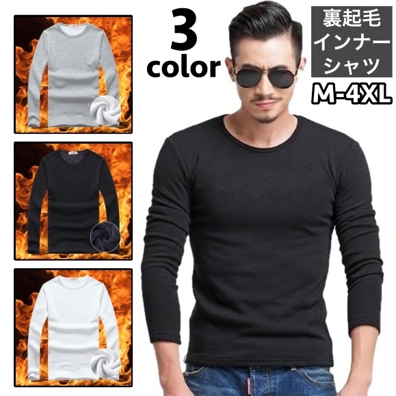 インナーシャツ 裏起毛 ロングTシャツ メンズ 男性 インナー 下着 長袖 インナーウェア 肌着 ラウンドネック 暖かい あった