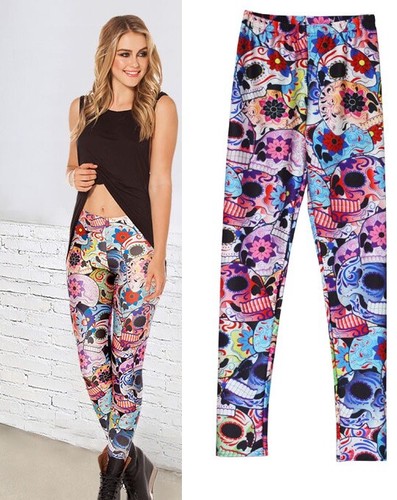 ☆目立ち度抜群のドクロプリントがインパクトありのレギンス♪