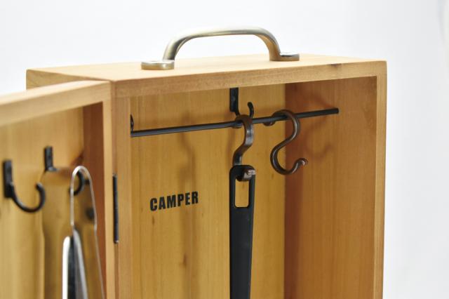 アウトドアで必須アイテムのキッチンツールや調味料などをまとめて、そのまま外へ持ち運ぶことができるウッドボックスです。アウトドアはもちろん、ご家庭のキッチンラックとしてもおすすめです。