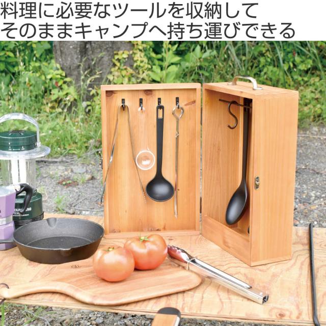 アウトドア キッチンツールボックス 幅22×奥行12×高さ35cm CAMPER ( キッチンツール 収納 ボックス 持ち運び スパイスボックス 収納ケース 木製 キッチン ツール キャンプ スパイスラック 調理器具 収納用品 )