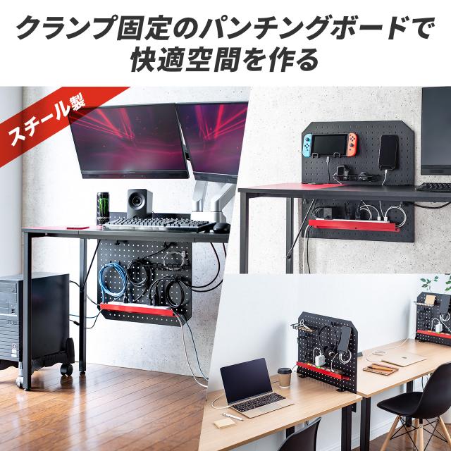 ケーブルオーガナイザー ケーブル収納 パンチングボード クランプ固定 デスクパネル タップ収納[100-MRSHG001]