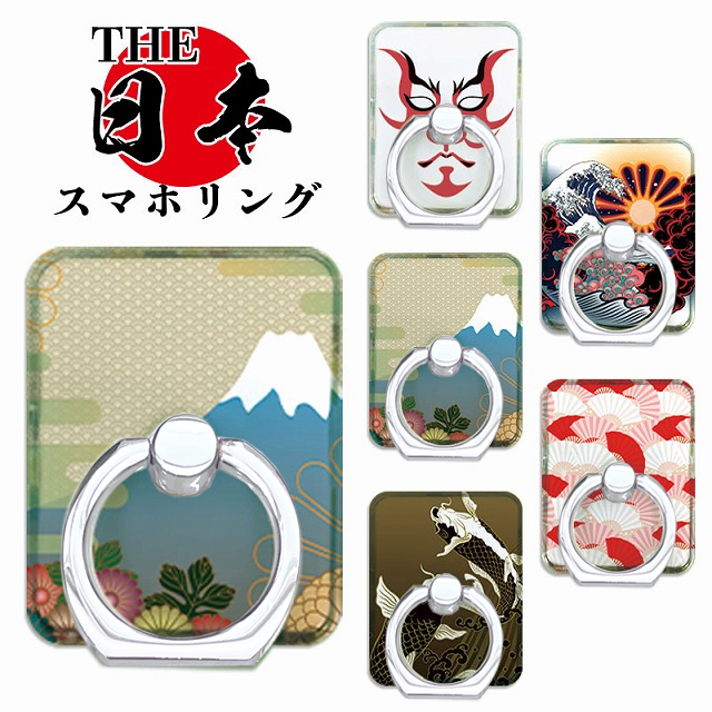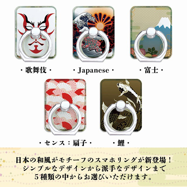 スマホリング 和風 和柄 日本 鯉 富士 スマホスタンド デザインリング 落下防止 リング 薄型 便利 スマートフォン アクセサリー ホールドリング 送料無料