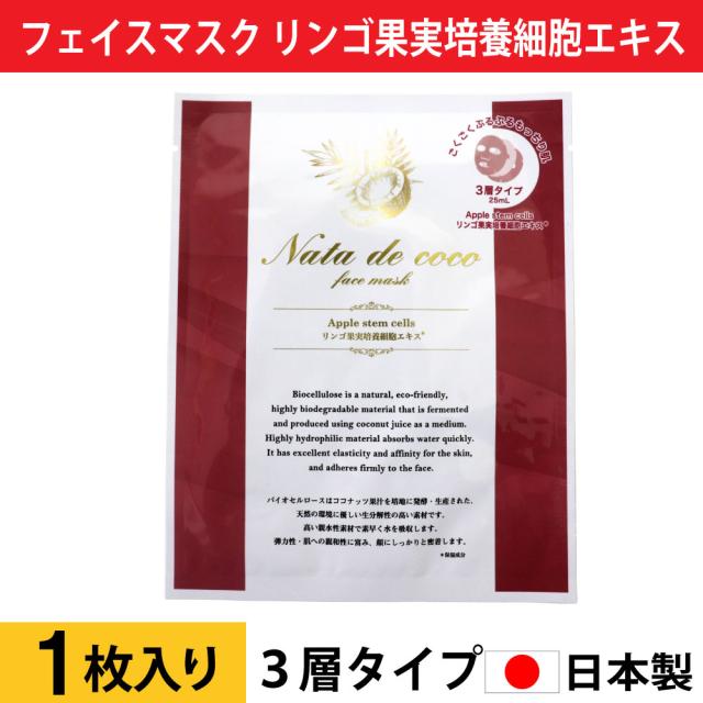 バイオセルロース フェイスマスク リンゴ果実培養細胞エキス 1枚入り 乳液 美容液 3層タイプ 個包装 フェイスシート 日本製