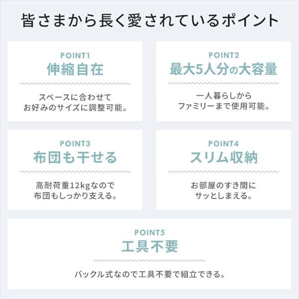 洗濯物の量や干すスペースに合わせてお好みのサイズに。