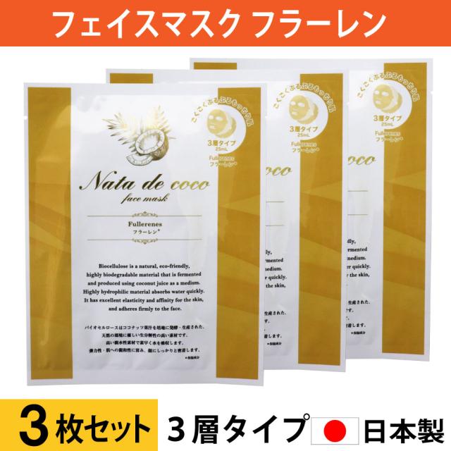 バイオセルロース フェイスマスク フラーレン 3枚セット 乳液 美容液 3層タイプ 個包装 フェイスシート シートマスク 日本製
