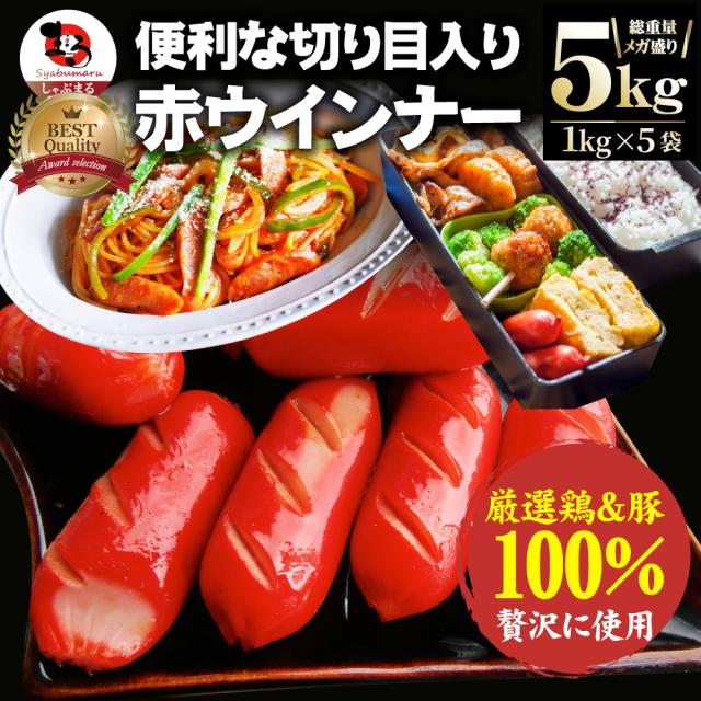 ウインナー 赤ウインナー 5kg(1kg×5) 厳選100%肉使用 タコさんウインナー 豚 焼肉セット 朝食 焼くだけ お弁当 弁当 アウトドア お家焼肉 レジャー 送料無料 バーベキュー 肉 食材 セット バーベキューセット キャンプ キャンプ飯 お肉の しゃぶまる