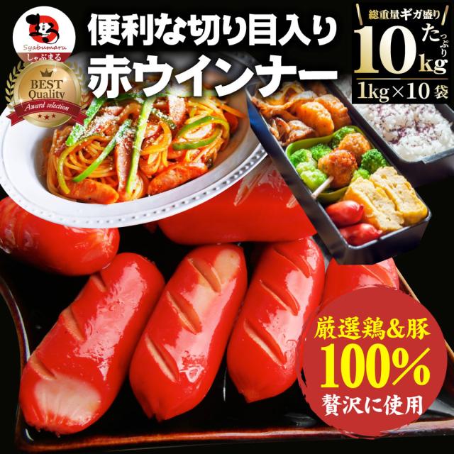 ウインナー 赤ウインナー 10kg(1kg×10) 厳選100%肉使用 タコさんウインナー 豚 焼肉セット 朝食 焼くだけ お弁当 弁当 アウトドア お家焼肉 レジャー 送料無料 バーベキュー 肉 食材 セット バーベキューセット キャンプ キャンプ飯 お肉の しゃぶまる