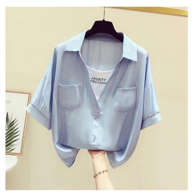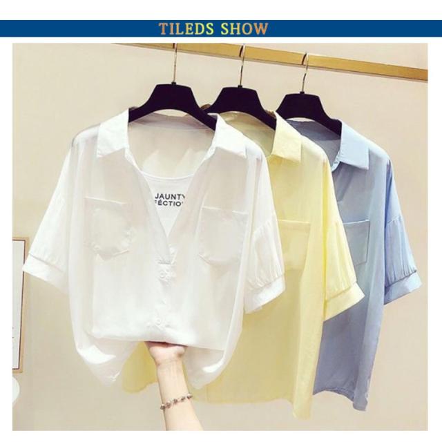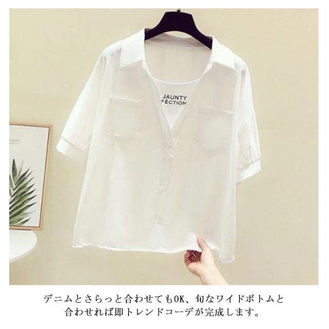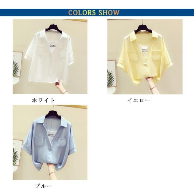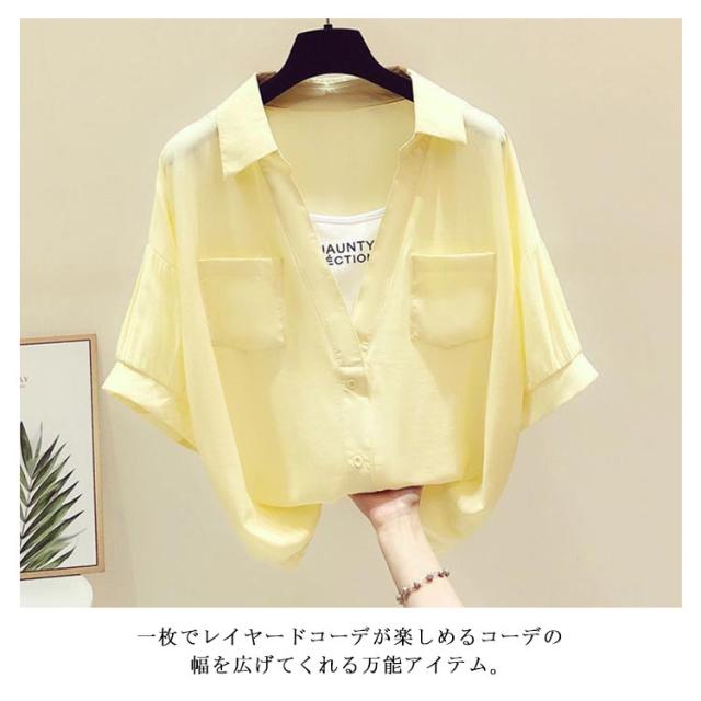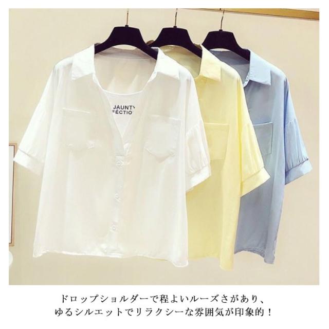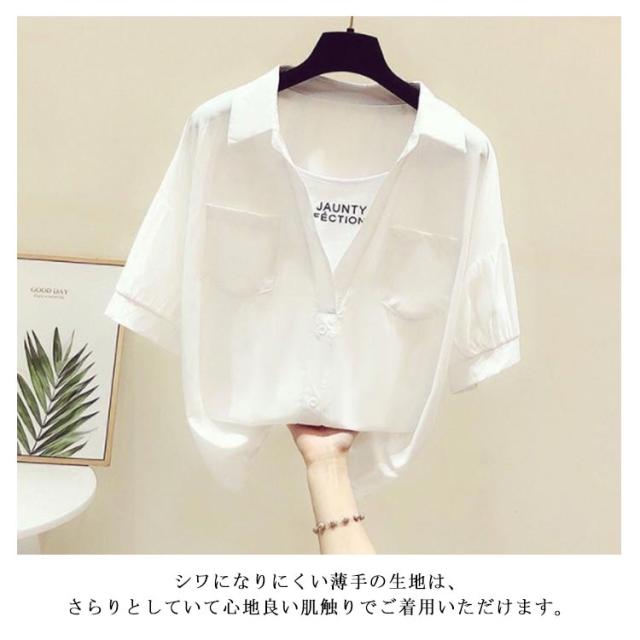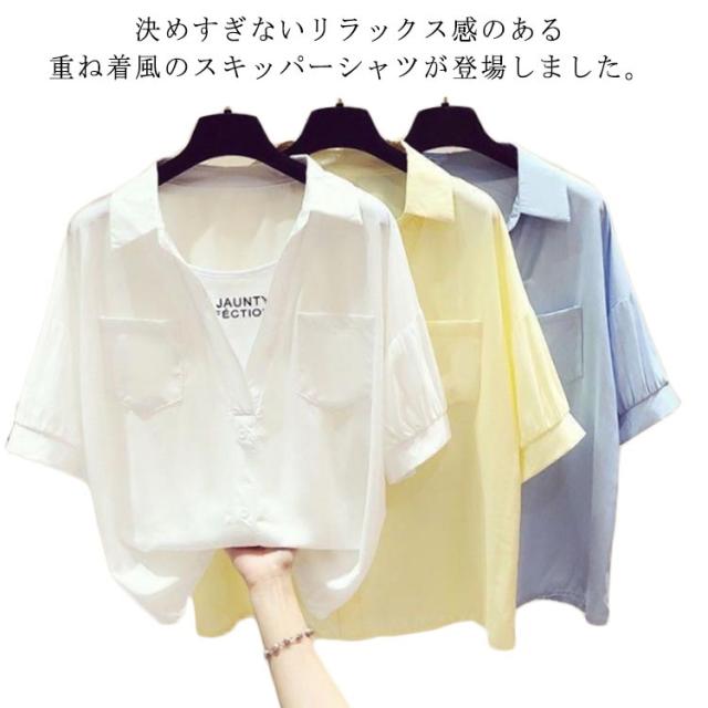 送料無料 スキッパーネック 重ね着風 フェイクレイヤード シルエットシャツ レディース トップス ブラウス ドルマン スキッパーシャツ Vネック 抜き襟 半袖 プルオーバー シンプル きれいめ 通勤 春 夏 ホワイト イエロー ブルー