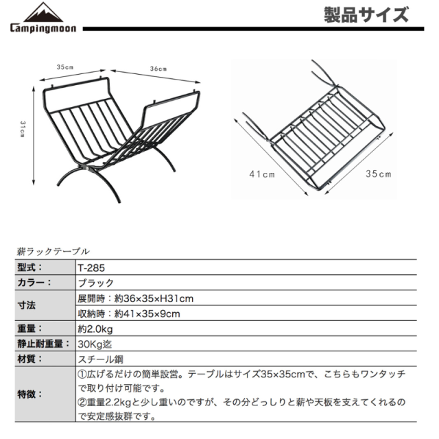 用途:薪スタンドテーブル 薪キャリー