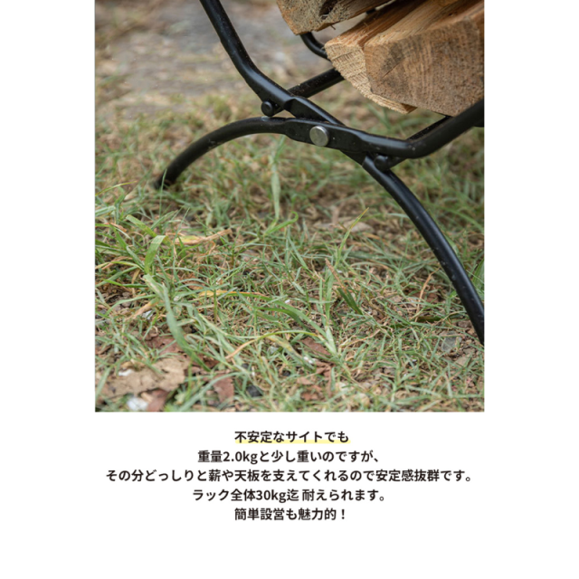 ■不安定なサイトでも■重量2.0kgと少し重いのですが、その分どっしりと薪や天板を支えてくれるので安定感抜群です。