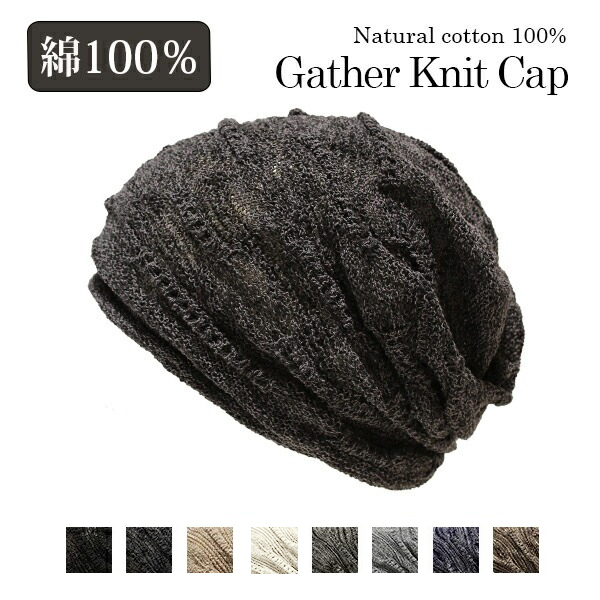 【メンズ ニット帽】夏用 綿100% 通気性 メール便送料無料 春夏 蒸れない おしゃれ 帽子 男性 ゆったり ケア帽子 春 夏 秋 冬 シンプル 薄手 外出 薄毛 白髪隠し レディース 女性【ナチュラルコットン100%ギャザーニットキャップ】
