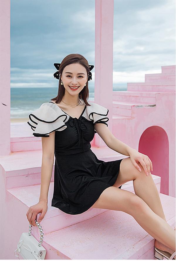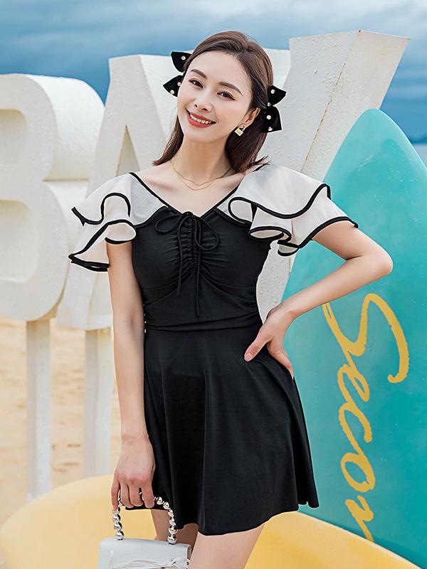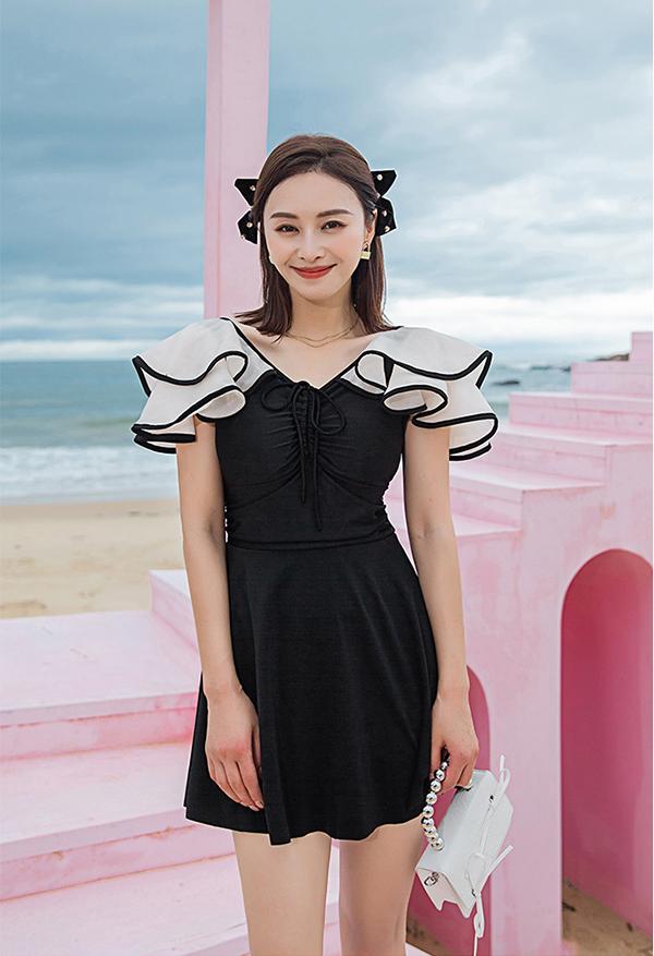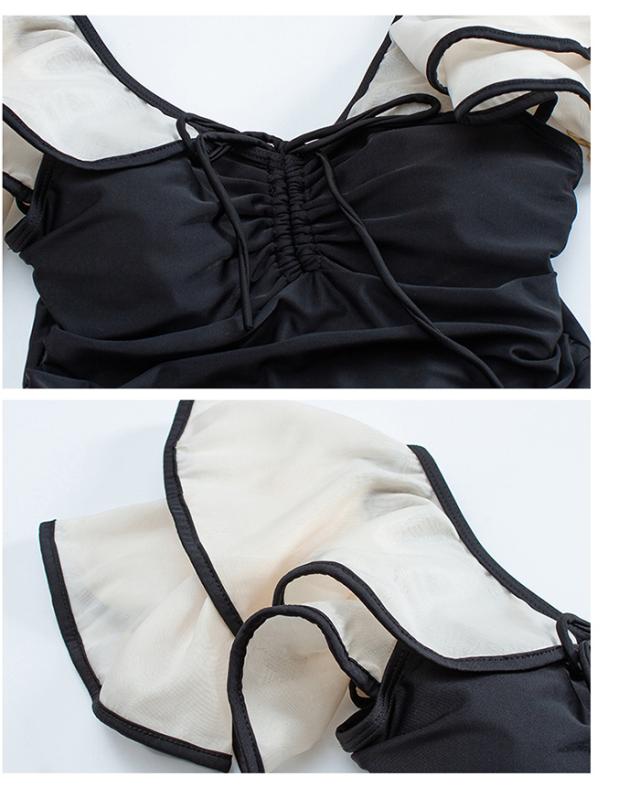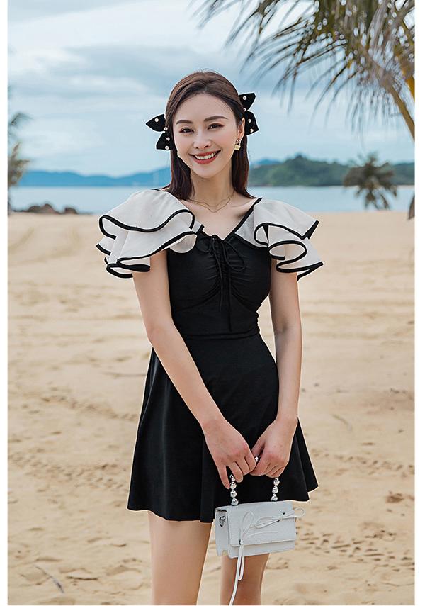 ワンピース水着 ぽっちゃり 水着 レディース 大きいサイズ 韓国 ガール 可愛い 袖付き 痩せ見え 小きいサイズ 体型カバー 花柄 温泉 ビーチ プール 海 水泳 セクシー オトナ女子 かわいい 黒 ブラック df041z7z7la