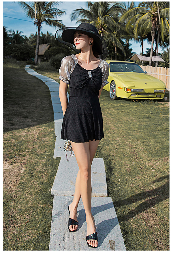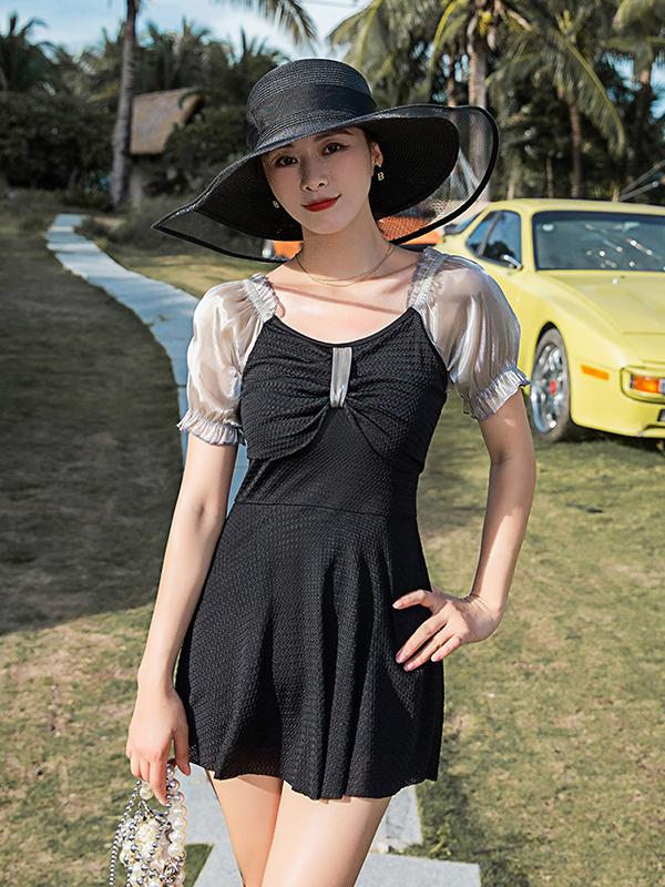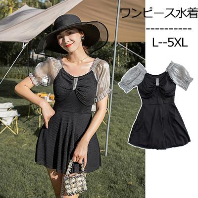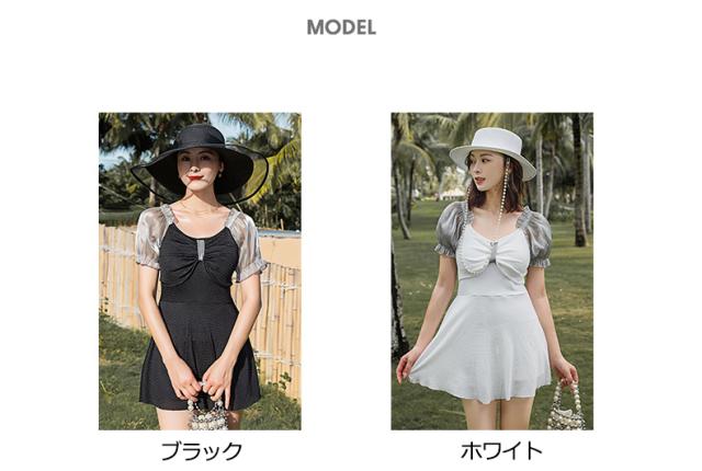 ワンピース水着 大きいサイズ水着 半袖 ぽっちゃり水着 体型カバー 半袖 パッド付 ビーチ 小きいサイズ 海 プール 温泉 韓国風 女性用 セクシー 大人かわいい ブラックホワイト df042z7z7la