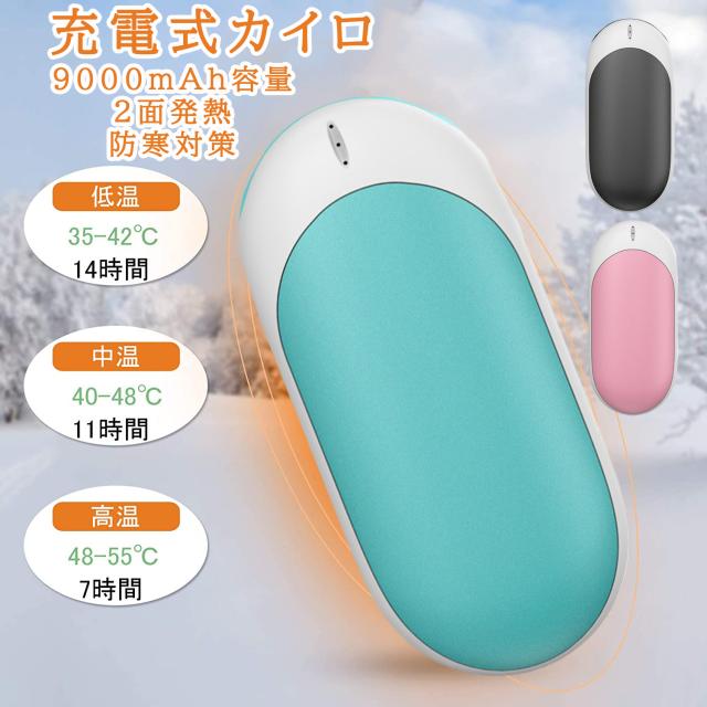 ハンドウォーマー USB充電式 3段階温度調節 9000mAh大容量 LEDライト付き マッサージ機能 充電式 電気カイロ 両面急速発熱 防寒グッズ アウトドア pse認証済み