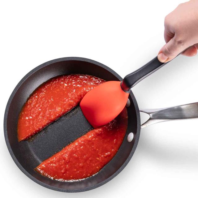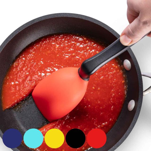 弾力性に優れたシリコン素材は容器をキズつけません。また耐熱温度が高く、ソース作りなどのフライパン調理でも安心です。