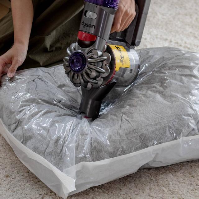 圧縮袋は穴や破損が無い限り、掃除機で空気を抜くことで繰り返してもご使用いただけますので、使用しないときはコンパクトに収納可能。里帰り先や産院へ持って行く際にも便利です。